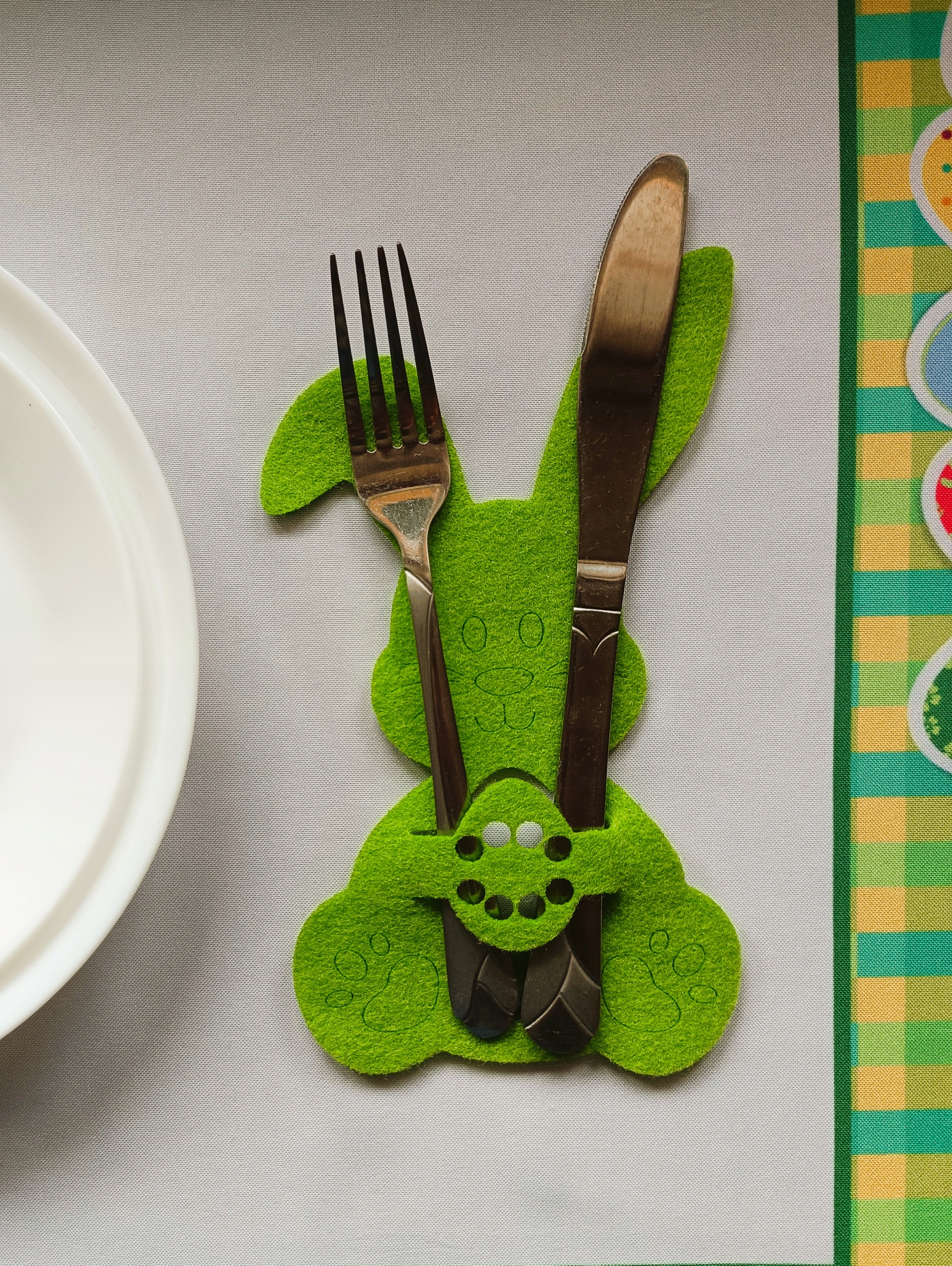 Пасхальний зайчик і фетував курку. Кришка столових приборів.
