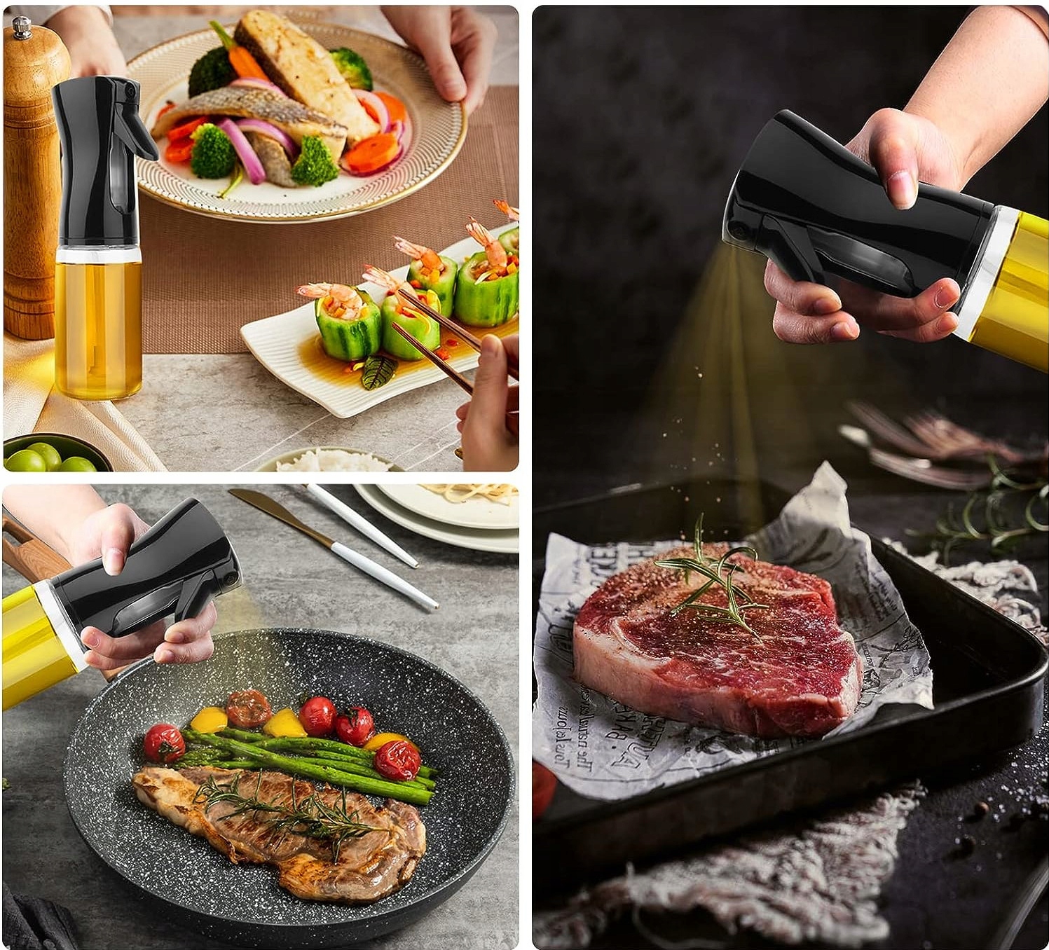 Спрей масло/оцет з дозатором у вигляді пульверизатора. Виготовлений з високоякісного скла та пластику. Багатофункціональне використання для різних видів харчових олій і спецій у рідкому вигляді.
