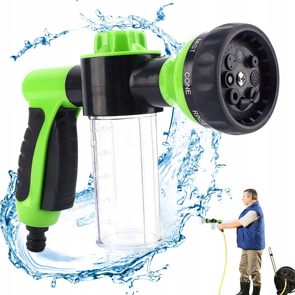 СПРЕЙ-ПІСТОЛЕТ 8 ФУНКЦІЙ ЗВОЛОЖНЮВАЧ ДЛЯ МИЙКИ АВТОМОБІЛІВ З КОНТЕЙНЕРОМ ДЛЯ МИЛА