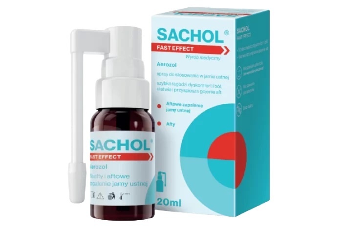Sachol Fast Effect спрей від афт та афтозного стоматиту. Знімає біль, прискорює загоєння афт і забезпечує комфорт і гігієну використання навіть поза домом