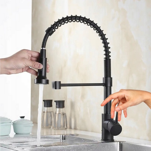 Кухонний змішувач, ВИСОКА ПРУЖИНА, ЧОРНИЙ МАТОВИЙ З ВИСУВНИМ ГНУЧКИМ ВИЛИВОМ
