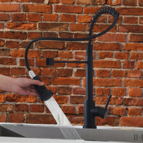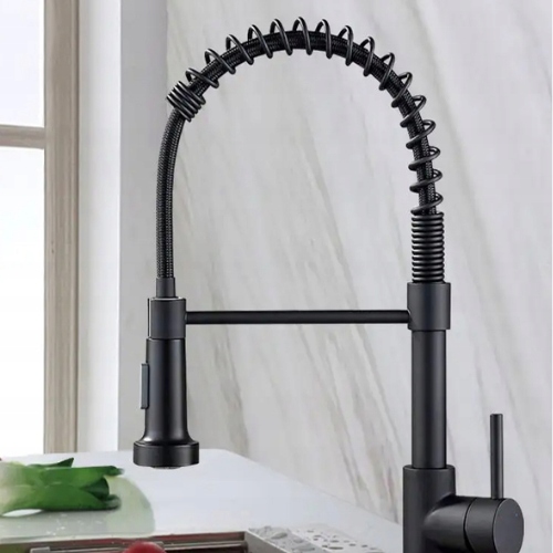 Кухонний змішувач, ВИСОКА ПРУЖИНА, ЧОРНИЙ МАТОВИЙ З ВИСУВНИМ ГНУЧКИМ ВИЛИВОМ