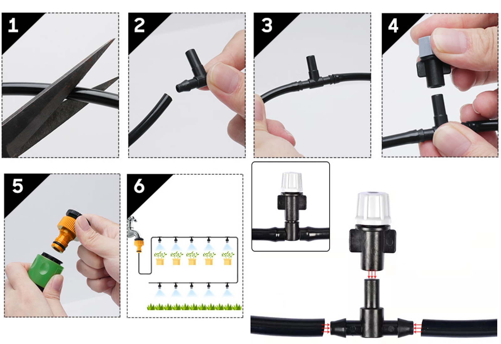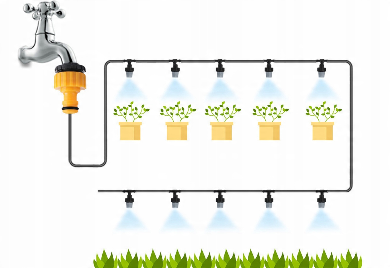 Шланг можна відрізати до будь-якого розміру та під’єднати до спринклера за допомогою роз’ємів. Таким чином ви можете регулювати ширину між форсунками відповідно до ваших потреб.