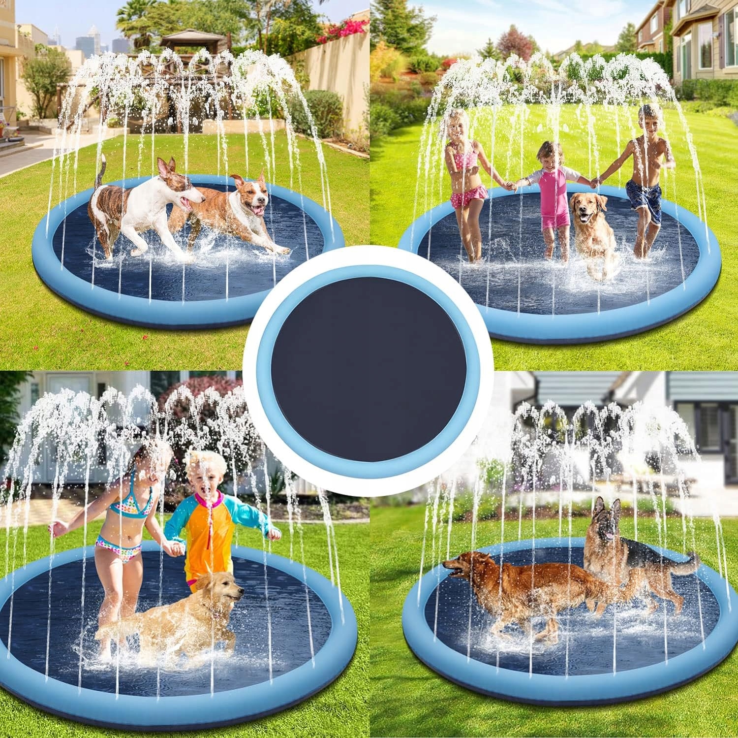 Пляшка для собак і дітей розміром 150 см достатньо простора для 1-2 дітей із собакою, немовлятами та домашніми тваринами, які можуть грати одночасно. ця розбризкувальна площадка, ідеальна іграшка на відкритому повітрі для дитячих вечірок цього літа, яка може одночасно розважити ваших собак і дітей, підходить для газонів, садів, басейнів, вечірок або святкувань, подарунок на день народження, іграшки для газонів для пляжу та літніх вечірок у басейні