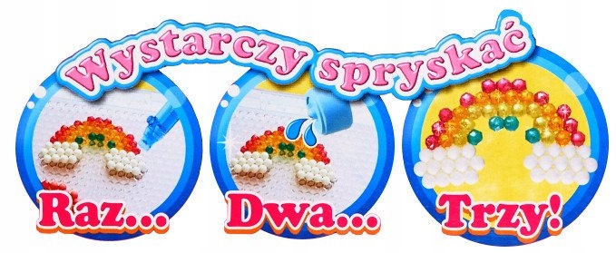 Завдяки барвистим Aquabeads прекрасні творіння — це лише бризки води геть! Немає необхідності використовувати праску, щоб завершити ваші творіння. Ви можете використовувати шаблони багато разів або отримувати ще більше задоволення, створюючи власні гарні візерунки, зокрема просторові.