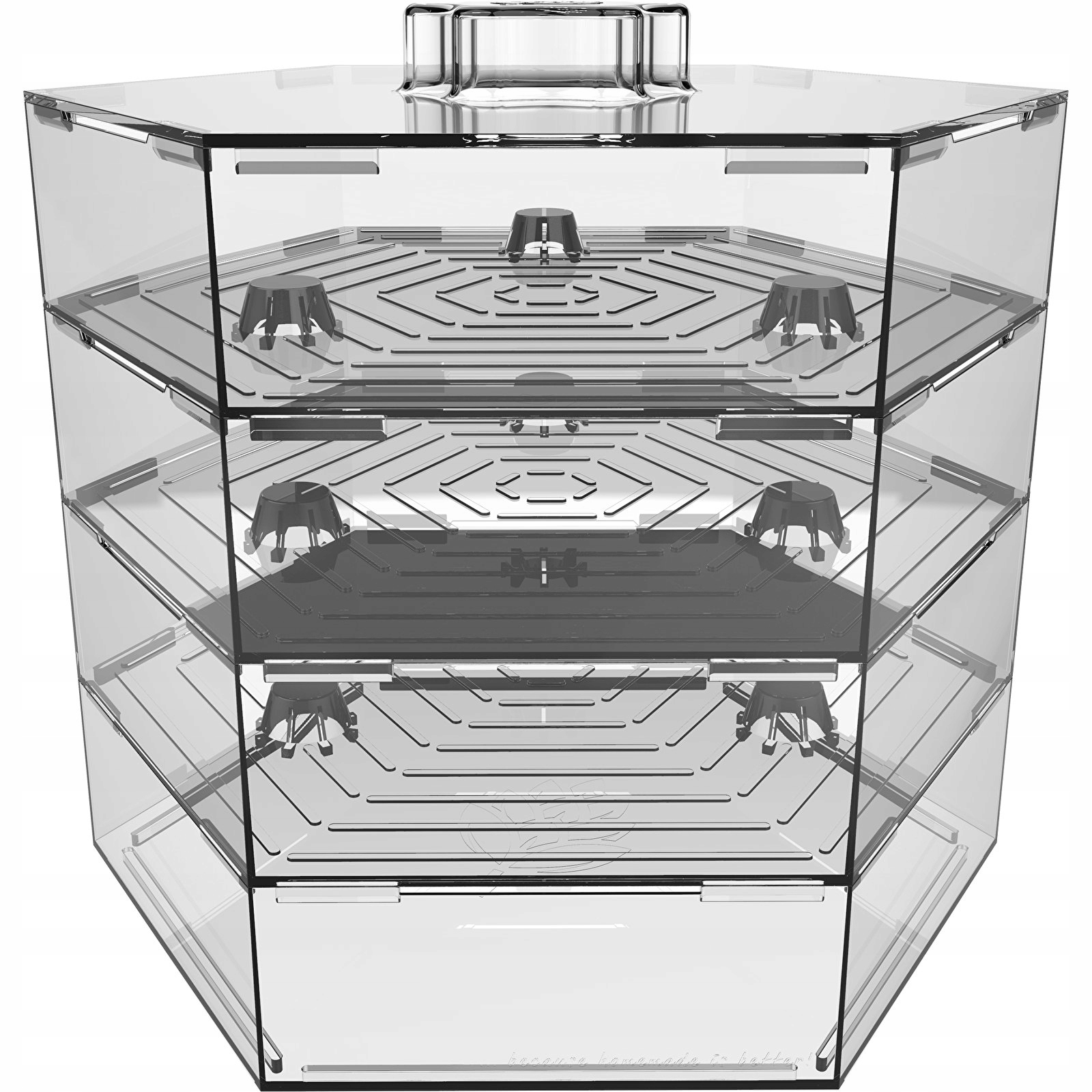 - Універсальність - завдяки нашому пророщувателю ви можете вирощувати різні сорти паростків одночасно, не займаючи додаткового місця! Завдяки прозорому матеріалу модель буде добре виглядати на будь-якій кухні та забезпечить достатній доступ світла.