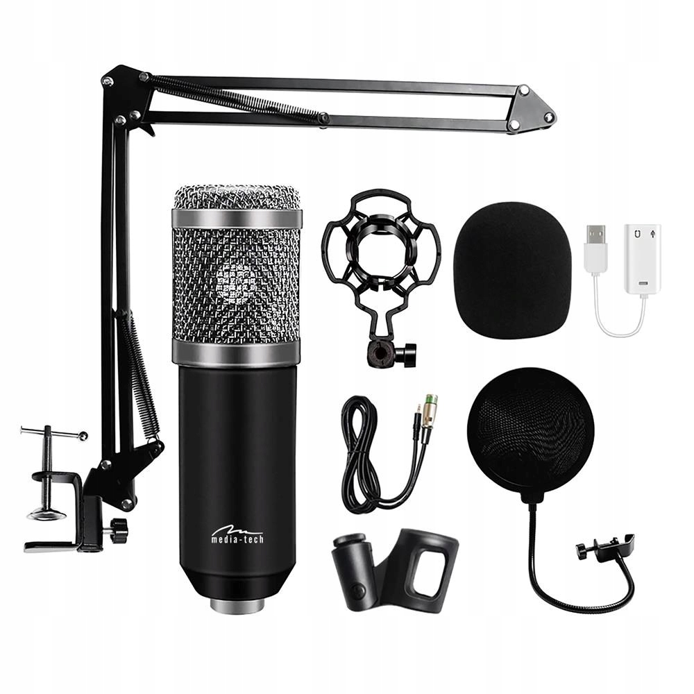СПРЯМОВИЙ КОНДЕНСАТОРНИЙ МІКРОФОН MEDIA-TECH ЗІ СРІБНИМ НАБОРОМ АКСЕСУАРІВ