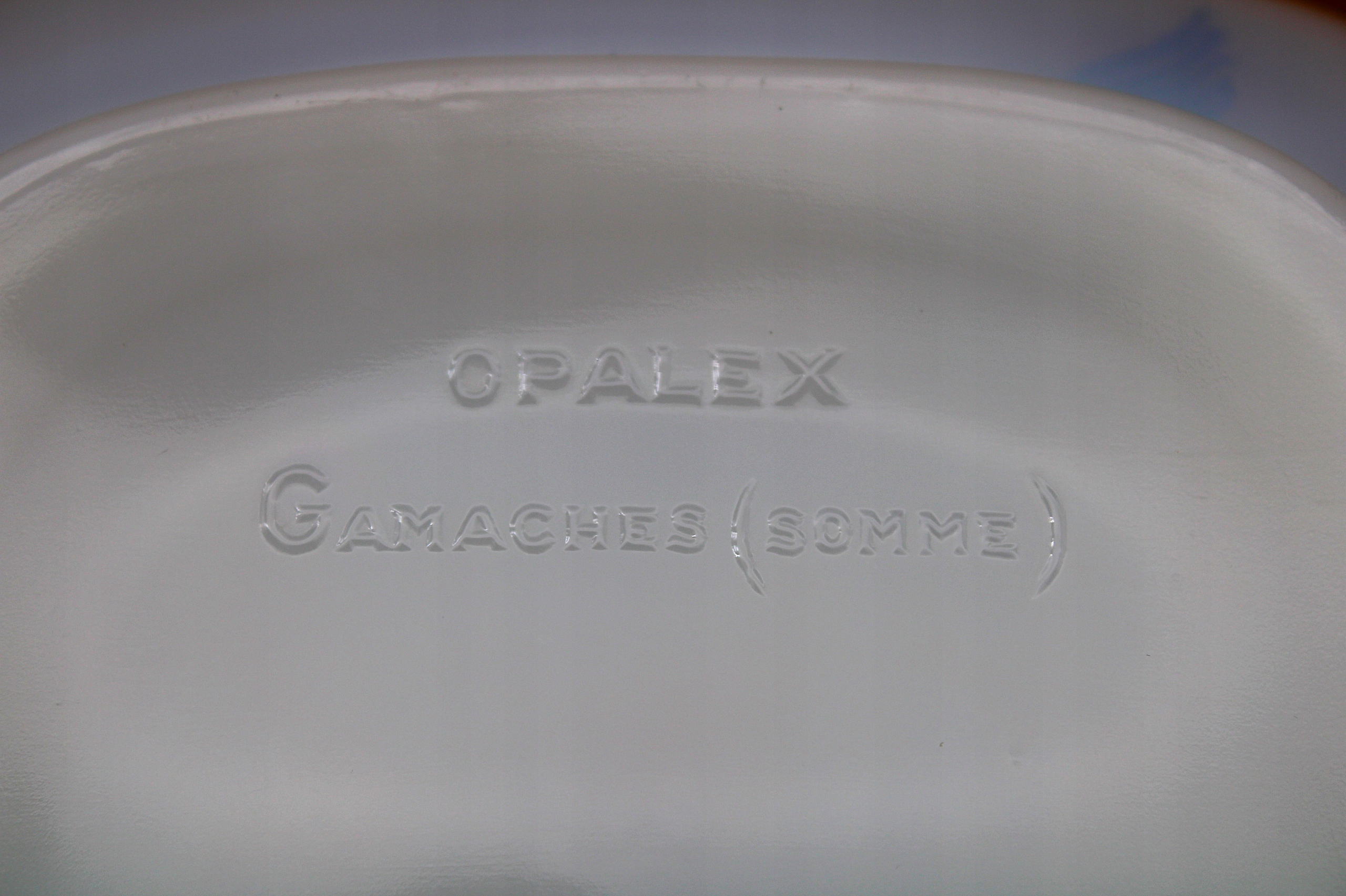 Я рекомендую миску з окулярів із засмагами Opalex Gamaches (Somma) Франція, цілий стан, який відзначається рукою, такий як на скануванні на стороні, невеликий природний фабричний дефект - 3,7 см ** Діагональні миску - 18 см
