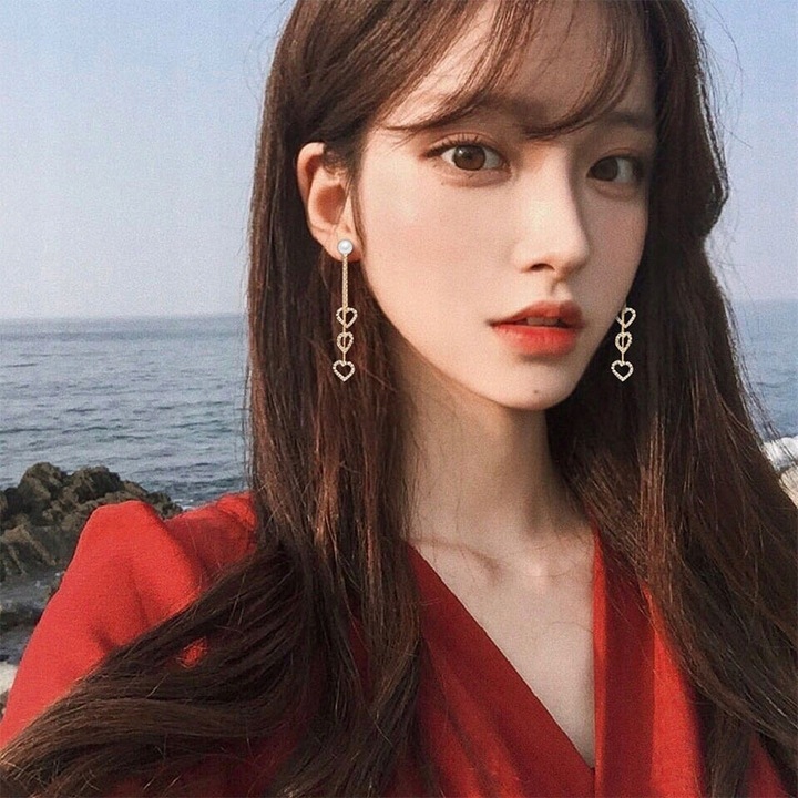 Srebrne Kolczyki Frędzle Serce Cyrkonie 80mm