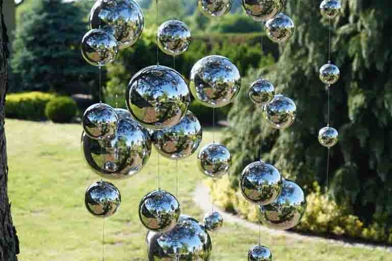 Srebrne Kule Dekoracyjne ze Stali Nierdzewnej 120cm z Haczykami Girlanda