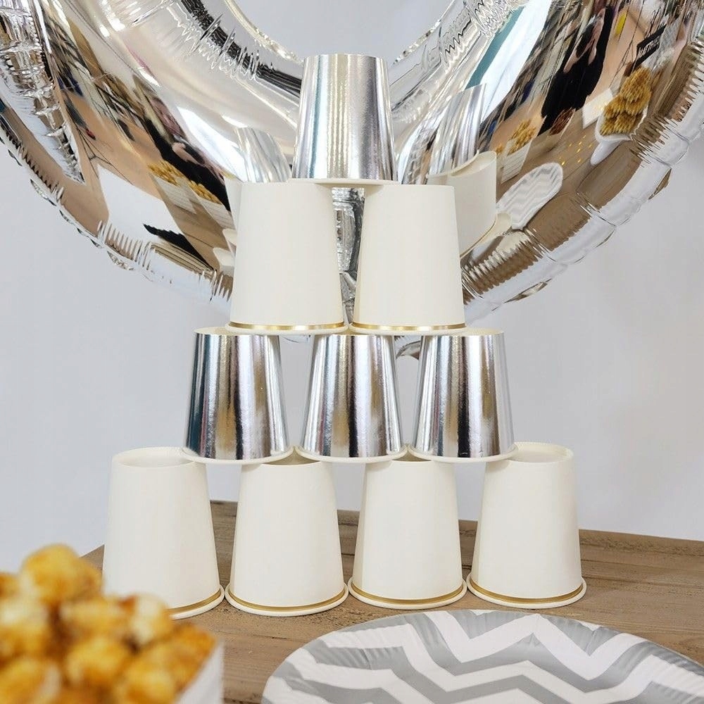 SREBRNY Zestaw SREBRNE eleganckie KUBECZKI TALERZYKI papierowe 12 szt.