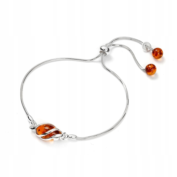 Чудовий браслет з бурштиновою оливкою. Цей чудовий браслет виготовлений зі срібла 925 проби та коньячного бурштину. Кінці ланцюжків оброблені бурштиновими кульками. Застібка браслета затискається, тому довжина браслета регулюється від 15 см до 24 см. Завдяки цьому він підходить для будь-якого розміру зап'ястя і зручний у використанні. Ви без проблем зможете встановити його самостійно без допомоги сторонніх осіб. Цей дуже вражаючий браслет доповнить будь-який стиль.