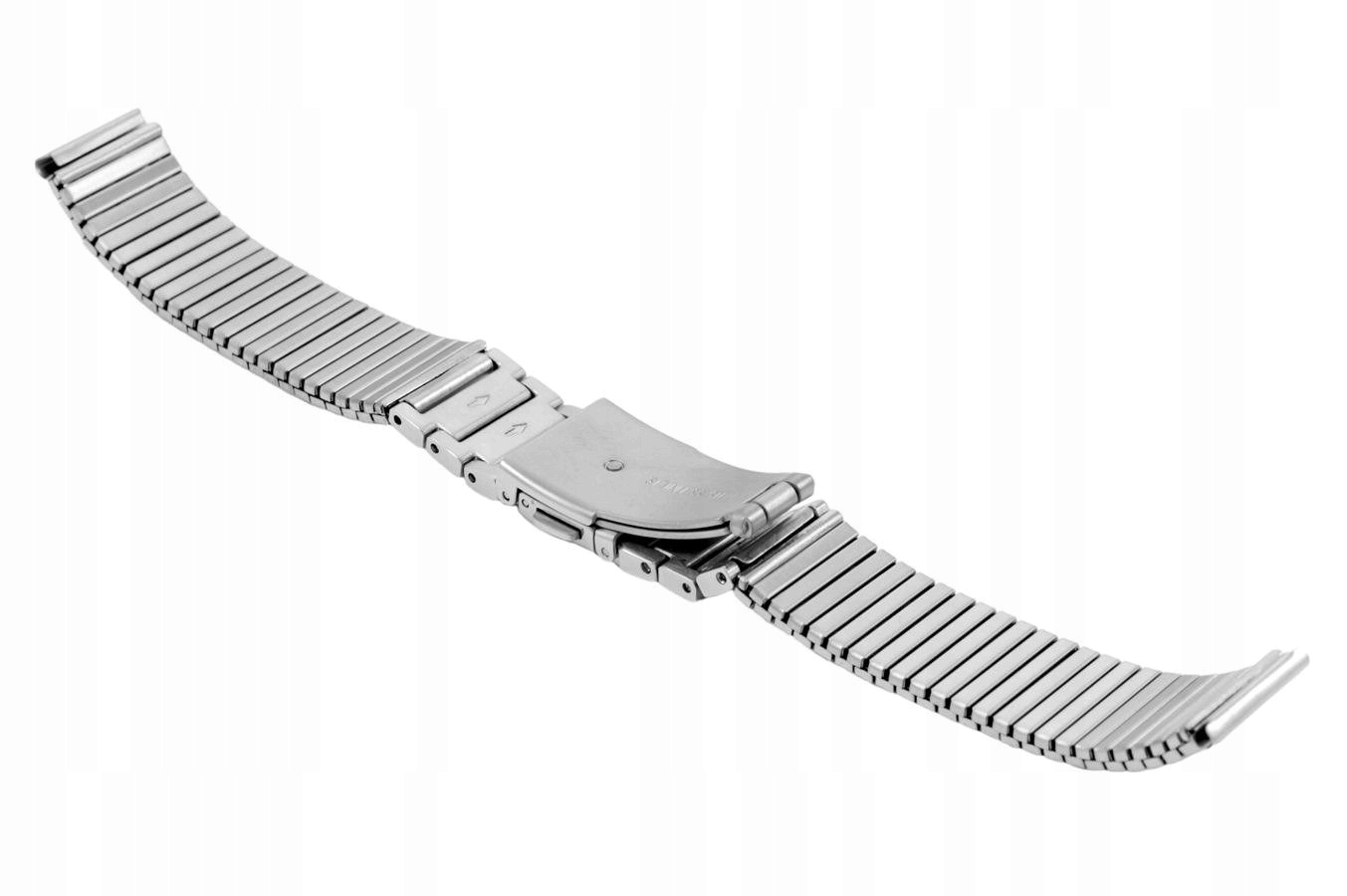 Гібридний браслет зі сталевою сіткою, що розтягується, зі сріблом. Класична застібка. Ширина 16 мм. Браслет підходить для будь-якого годинника зі стандартним кріпленням шириною 16 мм