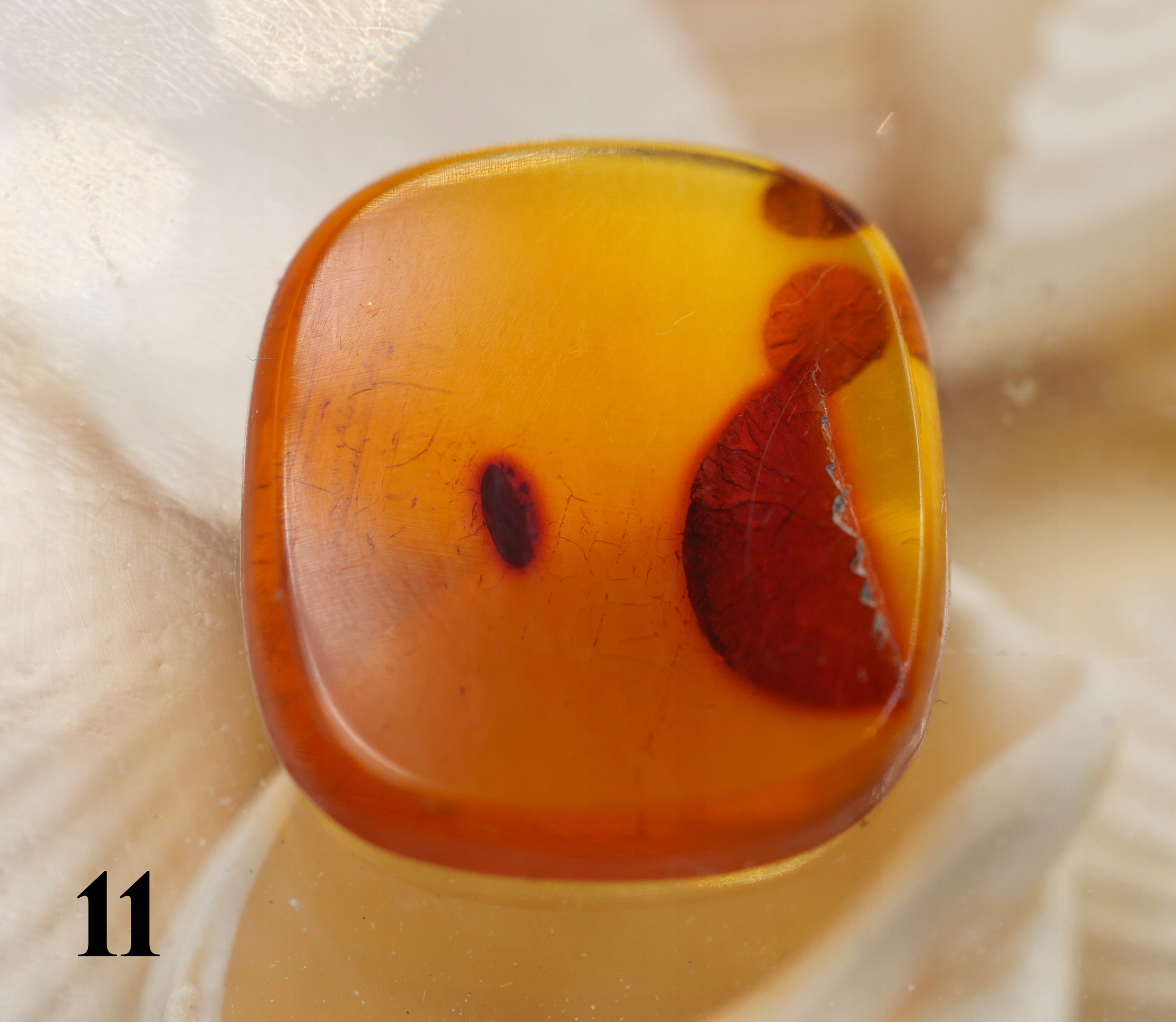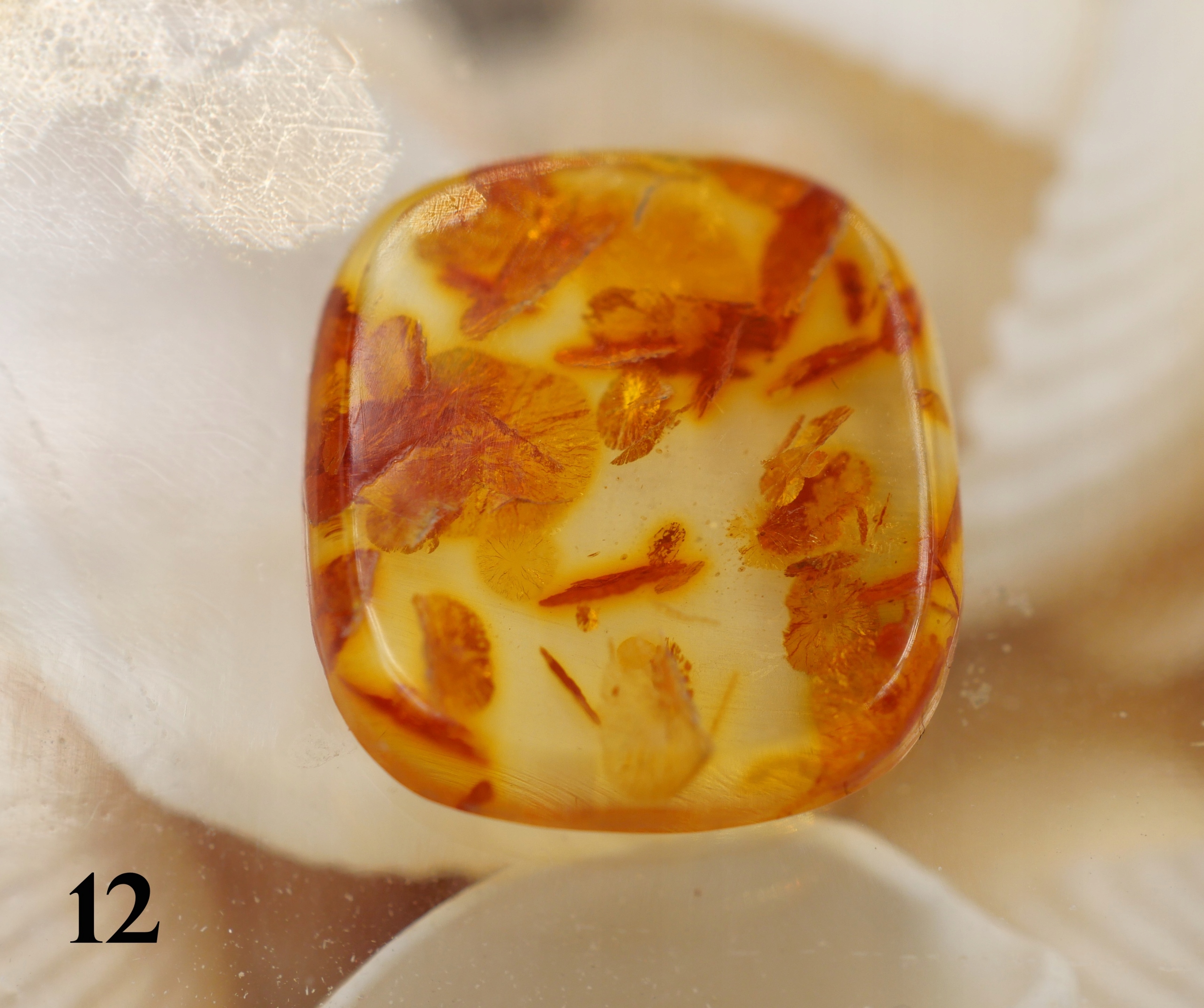 в бурштині, який ми швидко охолоне "Ваги", інакше відомі як "блиск для губ". Всередині бурштинового грудочки, які охолоджуються відносно швидко, виникають мікро -крекери. Ось як виглядають "лусочки" у цьому прекрасному природному бурштині.