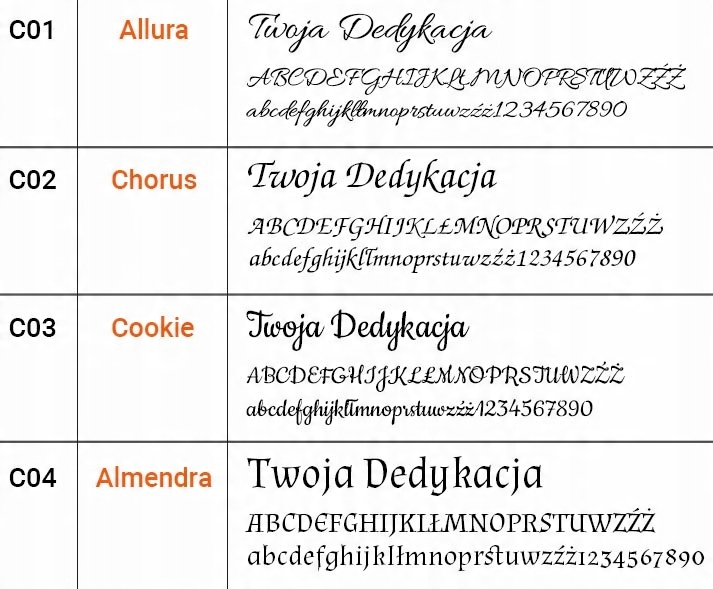 Можливість вибору шрифту стосується лише гравіювання та під час вибору власного тексту.