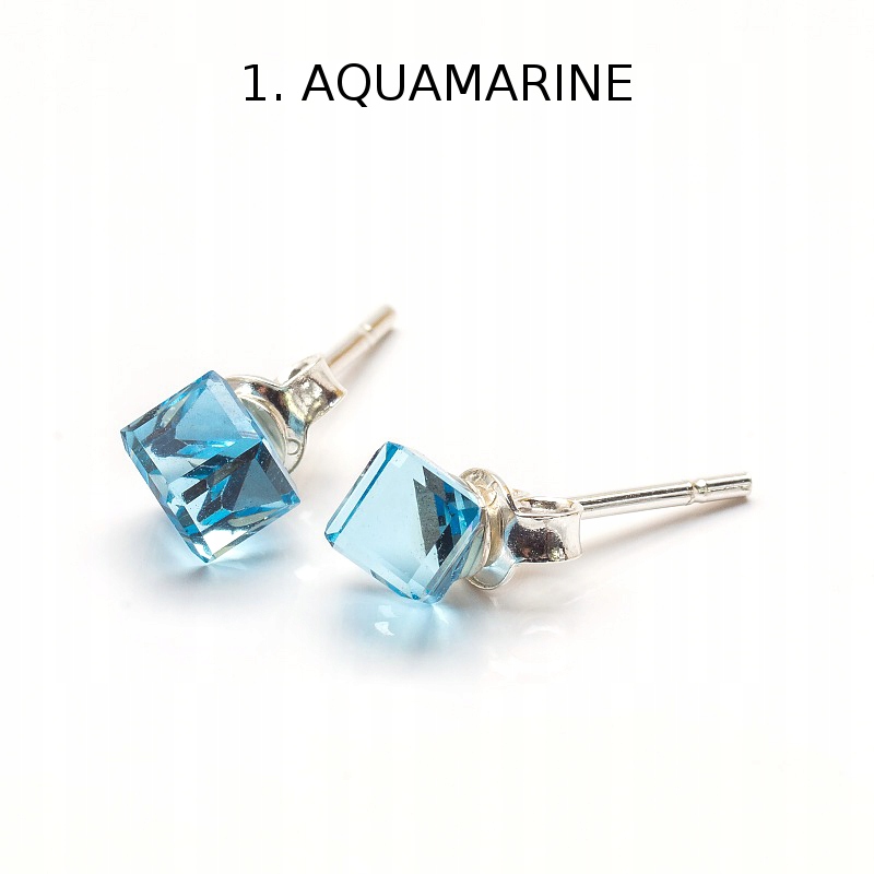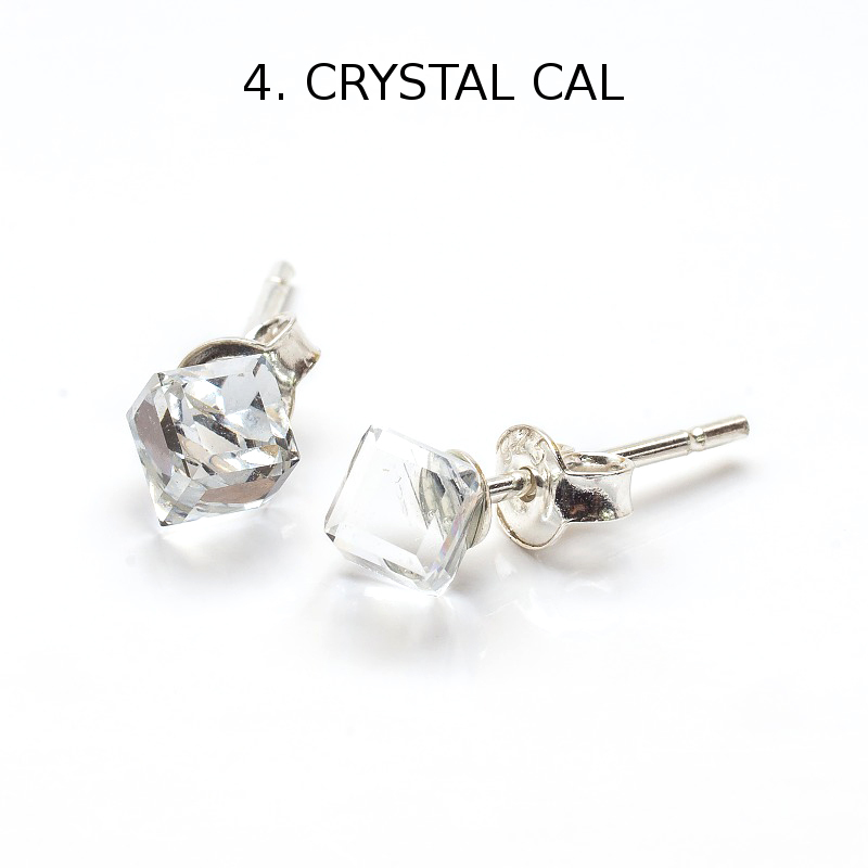 Срібні сережки 925 проби з кристалами Swarovski Cube 4 мм - 13 кольорів на вибір #KL2841