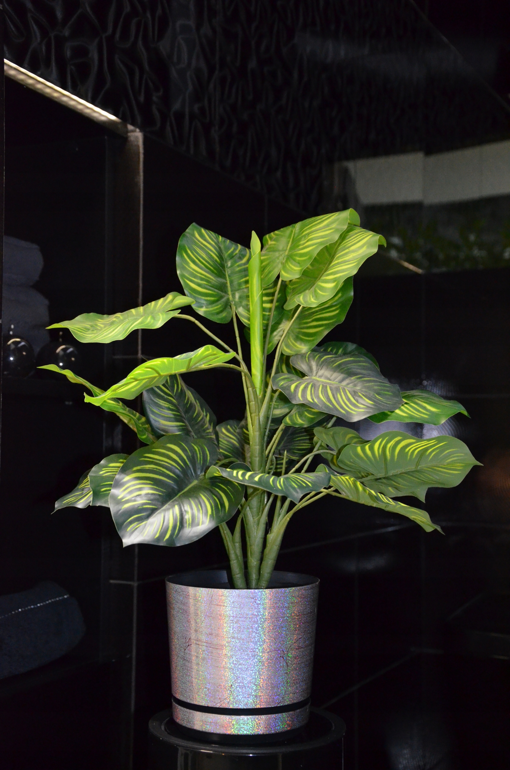 Металевий декор створює тривимірний голографічний ефект, переливаючись усі кольори мають ефект веселки, завдяки чому вазон набуває надзвичайного шарму.
