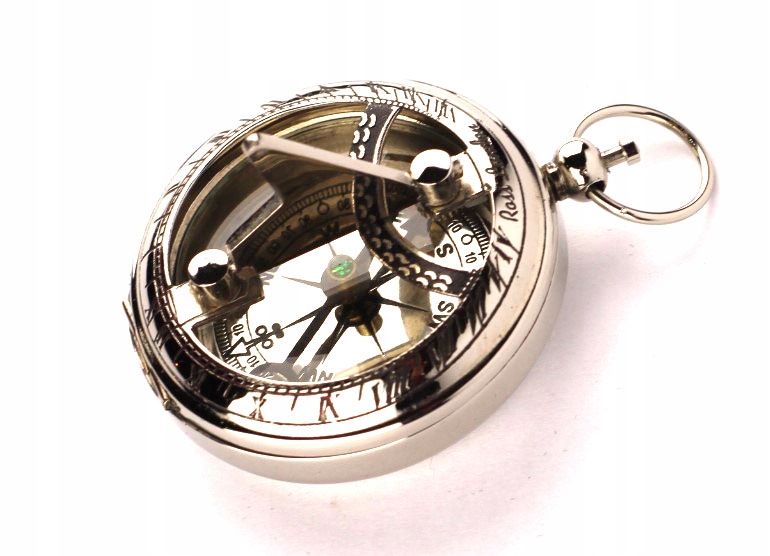 СРІБЛЯСТИЙ КОМПАС СОНЯЧНИЙ ГОДИННИК ДЛЯ ПОДАРУНКА