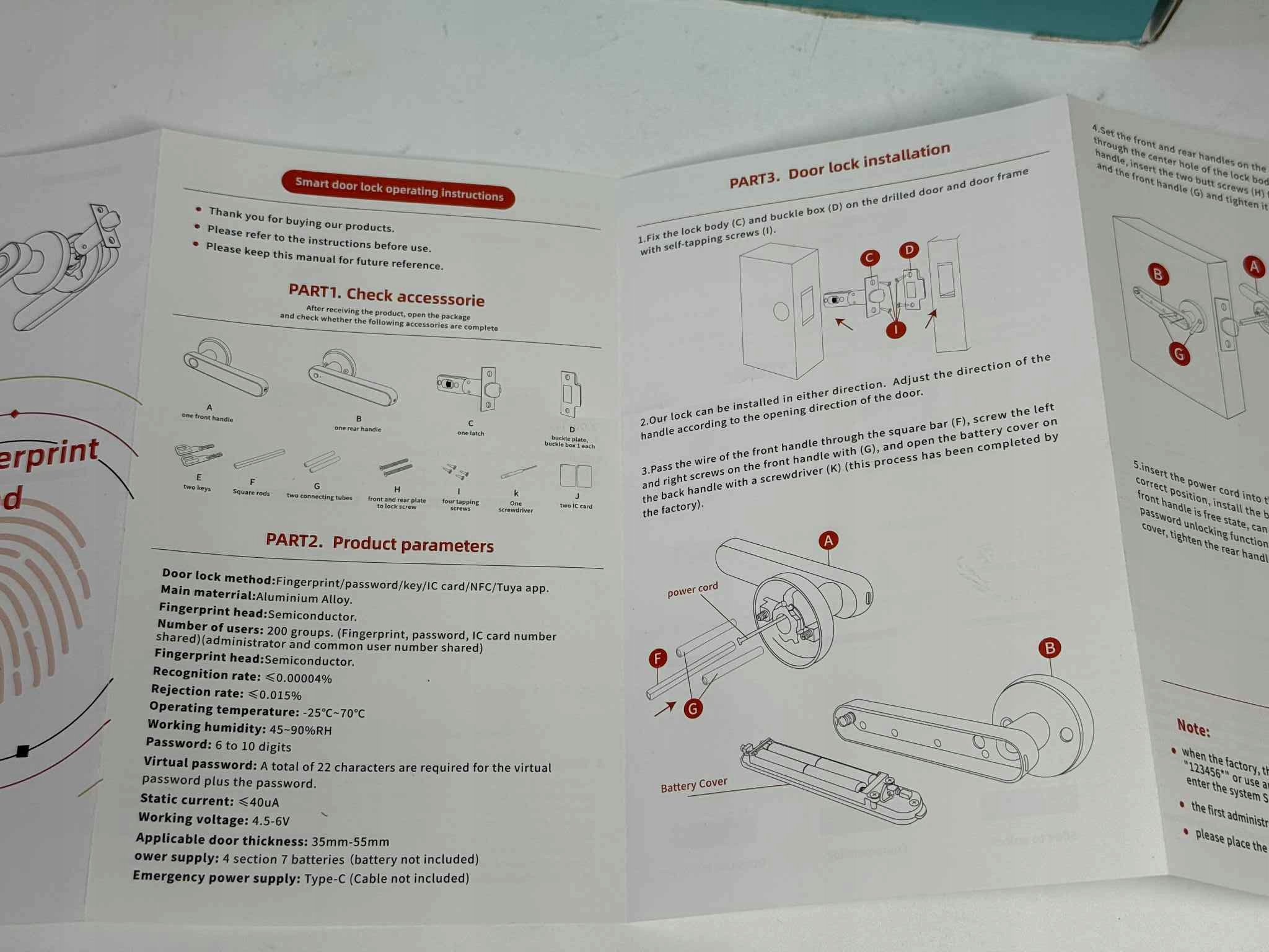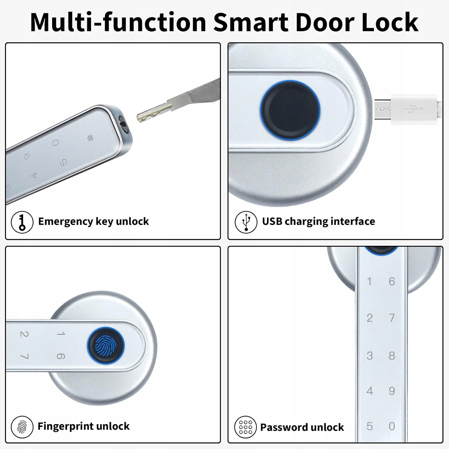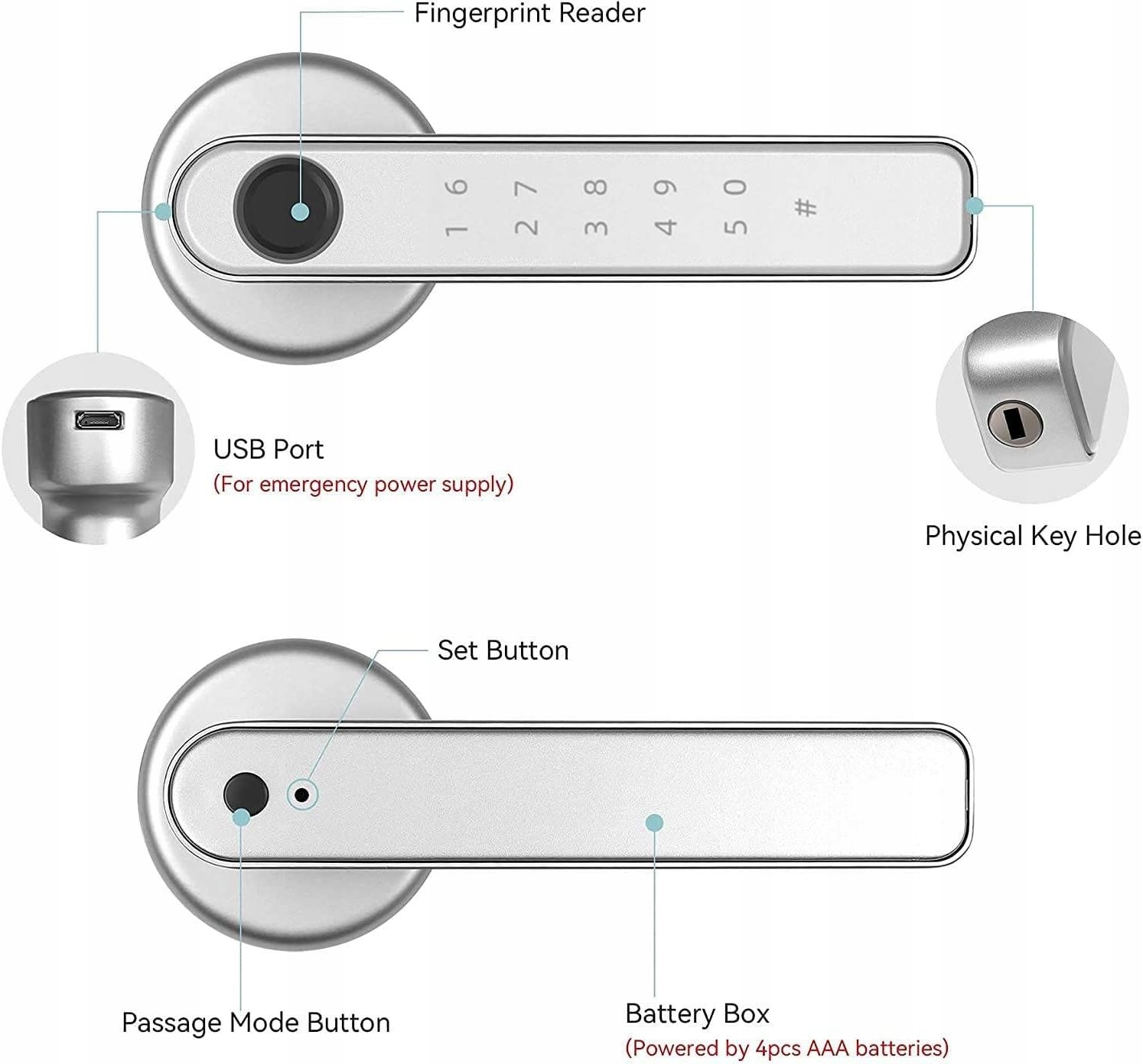 Замок дверей із зчитувачем відбитків пальців, шифром, ключовими, 4 необхідними акумуляторами AAA (не в обсязі доставки)