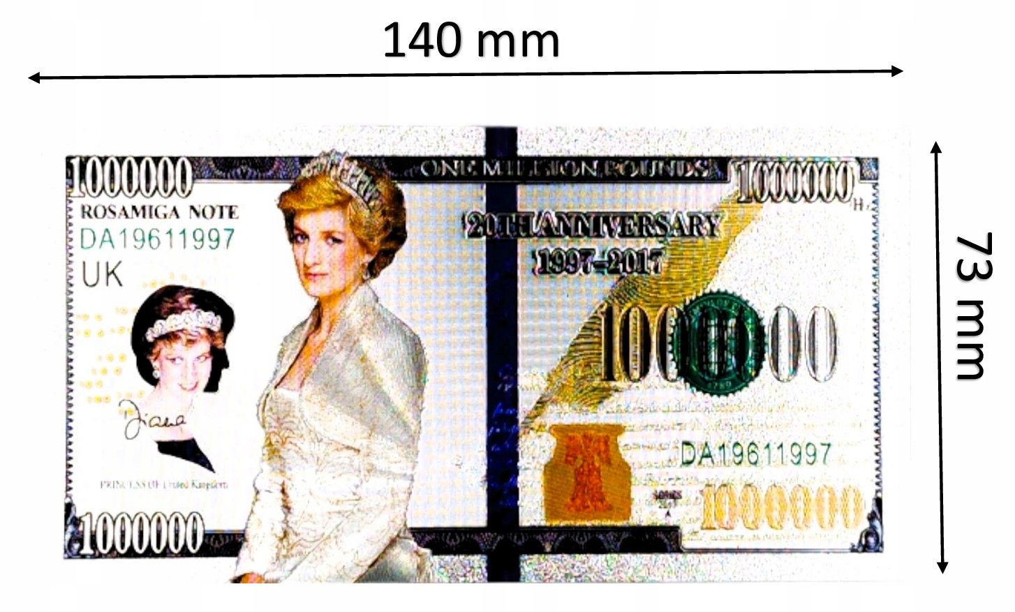 Срібна банкнота принцеси Діани номіналом 1000 000 доларів