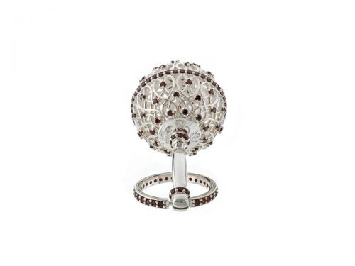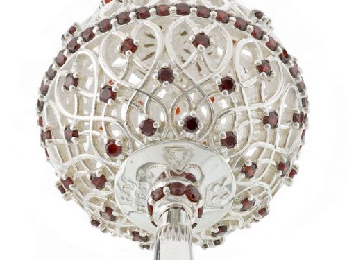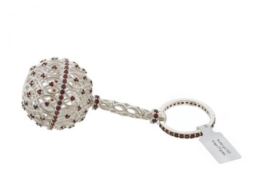 Наше брязкальце — це витончене лиття, витончена в кожній деталі, відшліфована до блиску на відомій ювелірній фабриці. Брязкальце вручну вставлено 155 рубіновими цирконами.