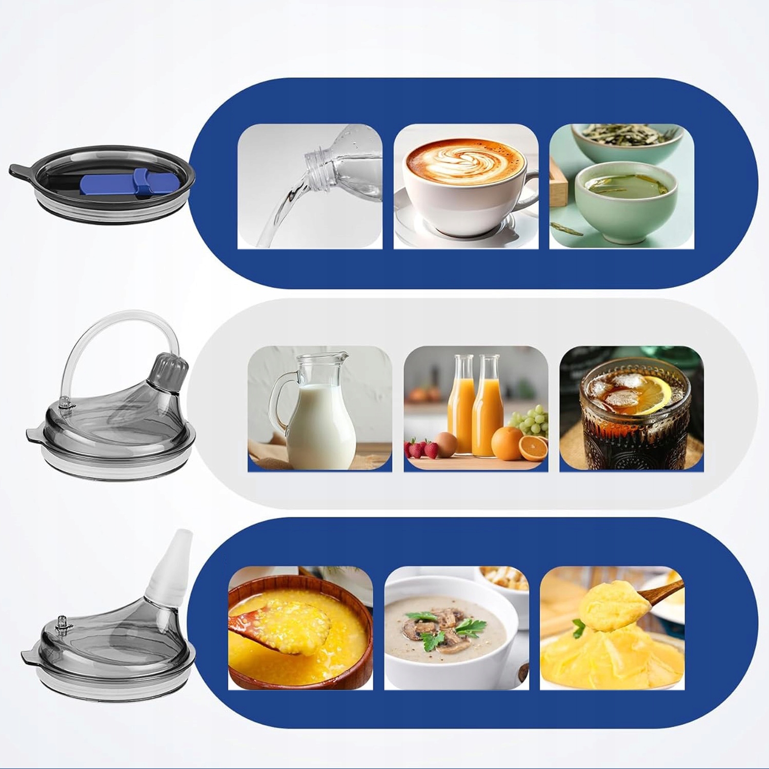 ✔️Оснащений двома змінними кришками, він гнучкий і універсальний, ідеально підходить для питної води, молока, соків або напіврідких продуктів.