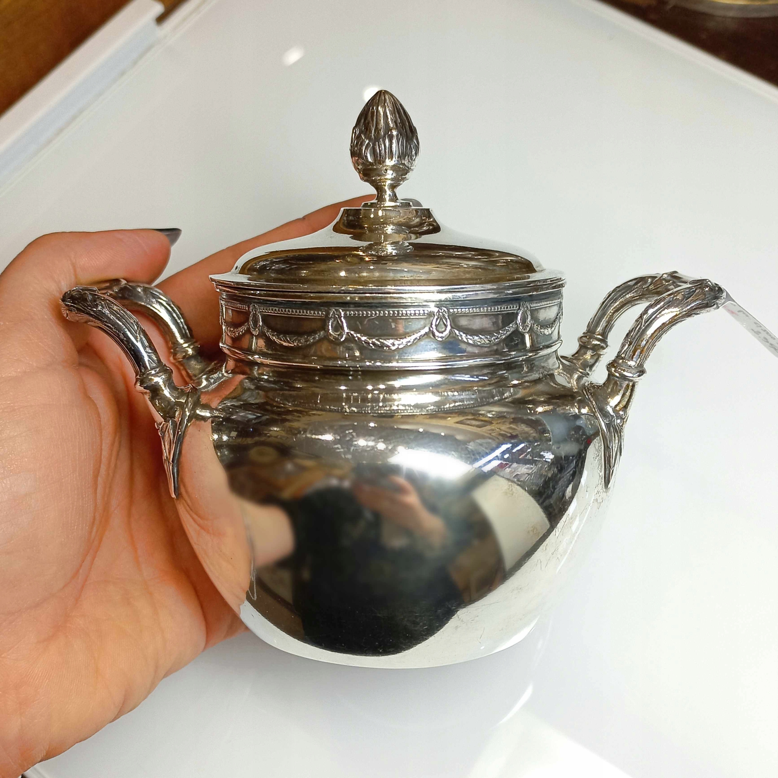 Предмет продажу срібна цукорниця з кришкою, прикрашена мотивом гірлянди, всередині позолочена
