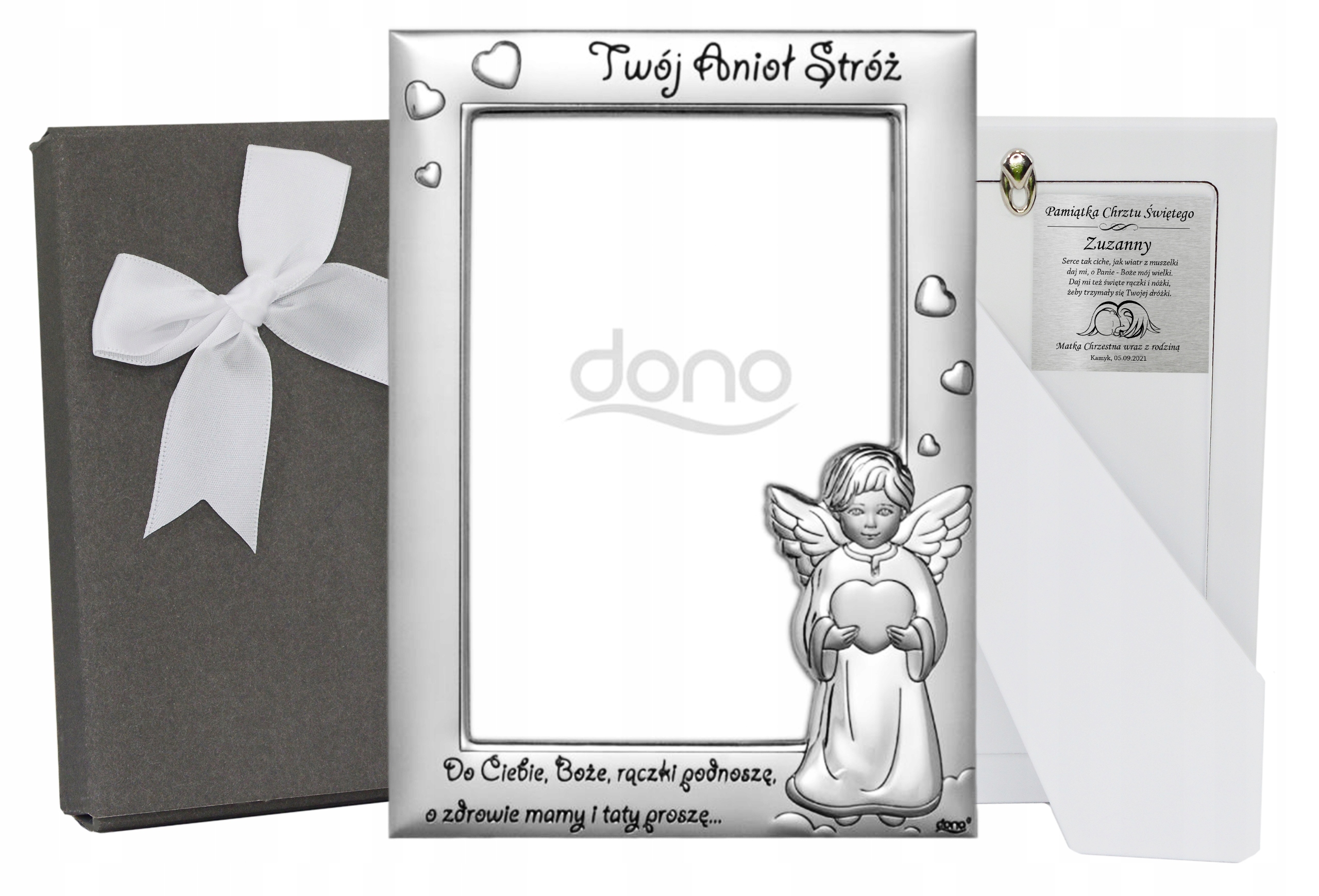 На передній частині рамки є вигравіруваний напис: «Тобі «Боже, возношу руки, молюся за здоров’я мами й тата...» та напис: «Твій Ангел-охоронець».