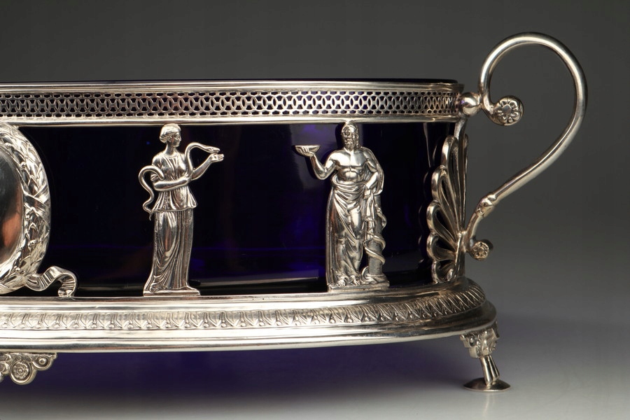 Срібна жардиньєрка - кобальтове скло