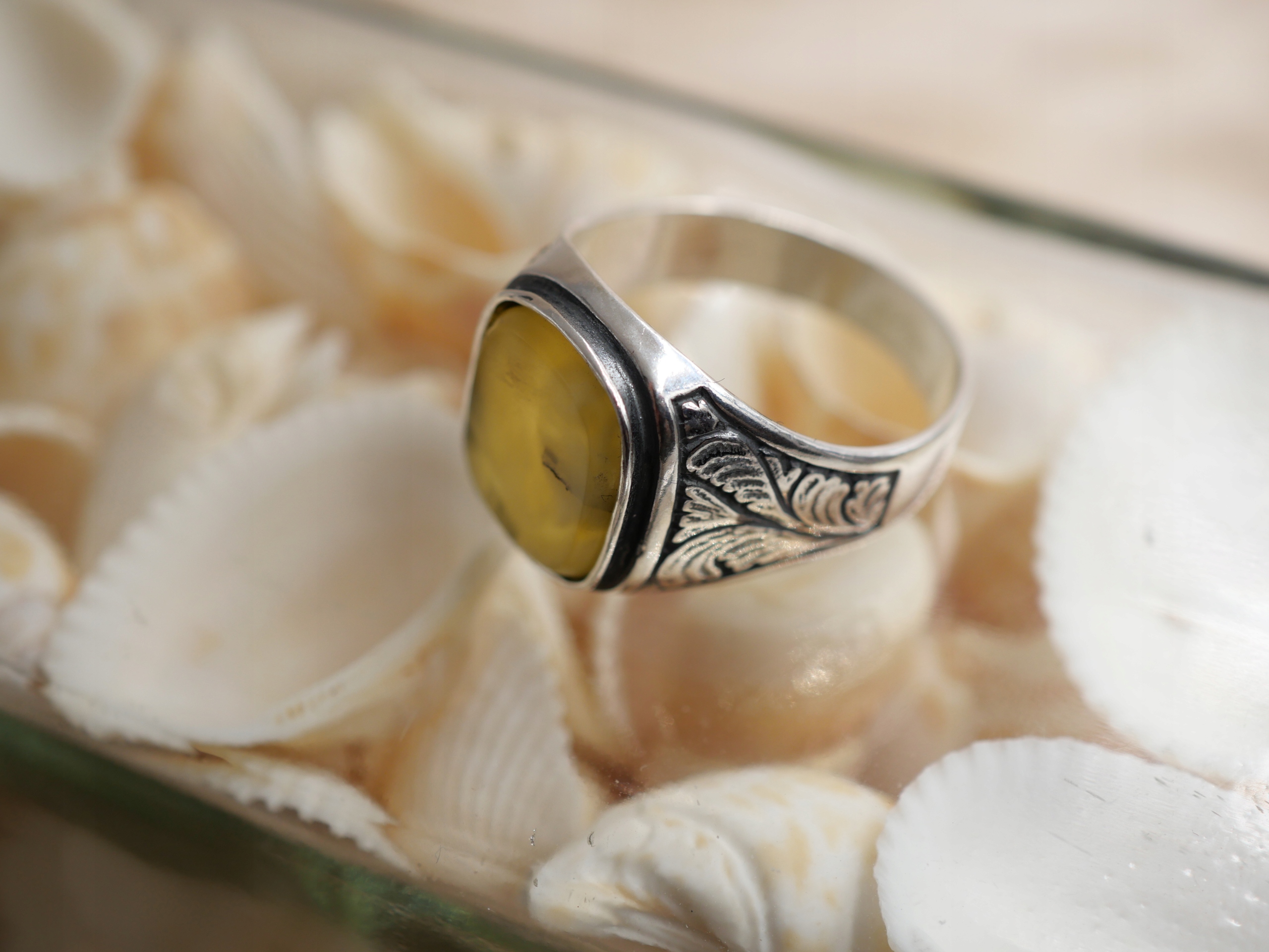 Срібна каблучка-печатка 0,925 проби-30 натуральний бурштин