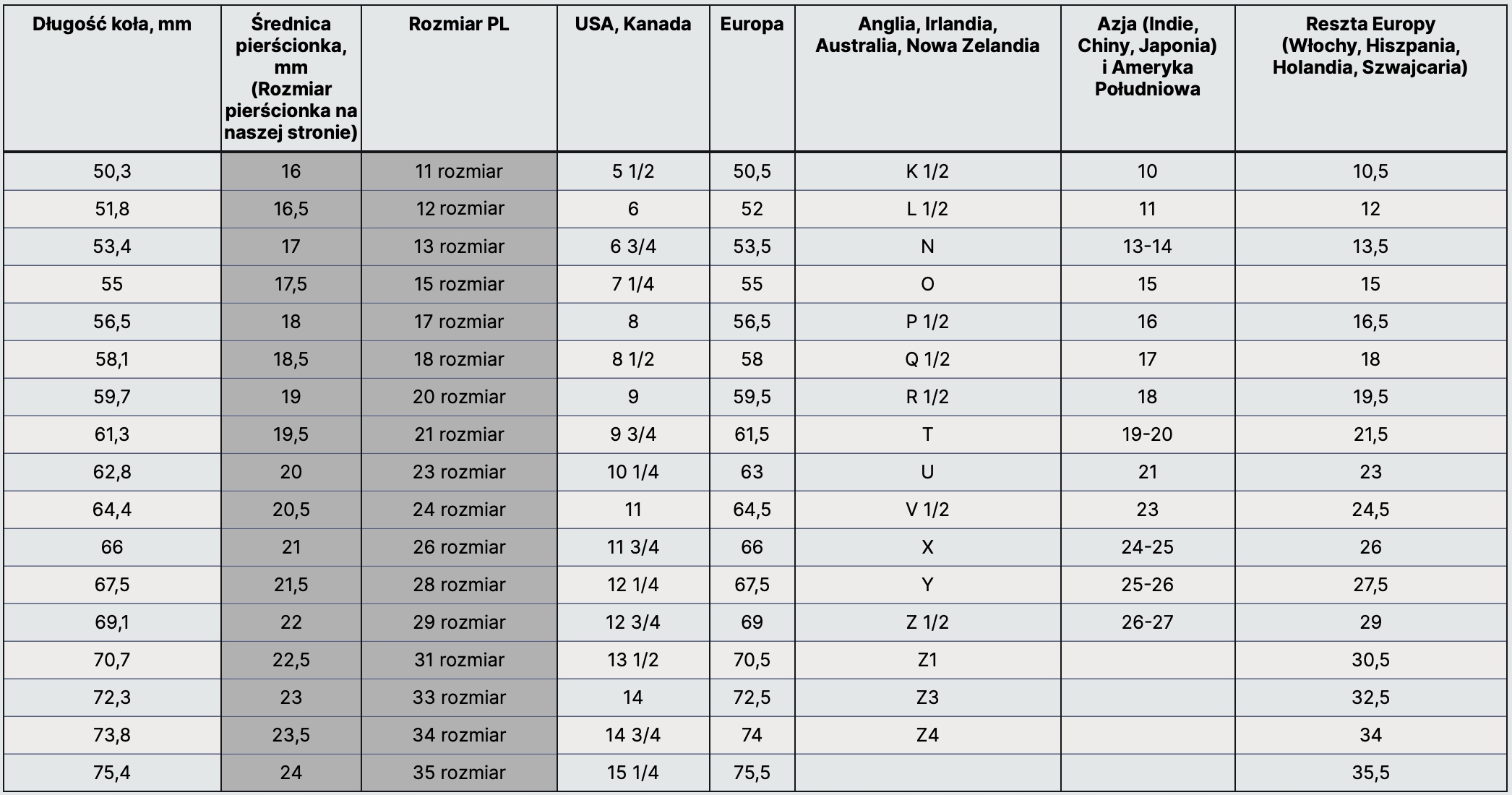 Скористайтеся таблицею розмірів унизу цієї сторінки. Порівняйте свій розмір із найближчим у першому стовпчику (під назвою «Довжина кільця, мм»), а потім знайдіть свій розмір у стовпці «Розмір кільця» на нашому веб-сайті.