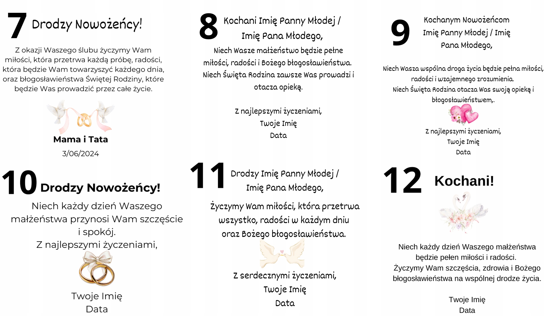 VII. «З нагоди прийняття Святого Хрещення бажаємо вам, щоб Бог дав ти повнота Його любові і що Мати Божа завжди буде тебе захищати!»