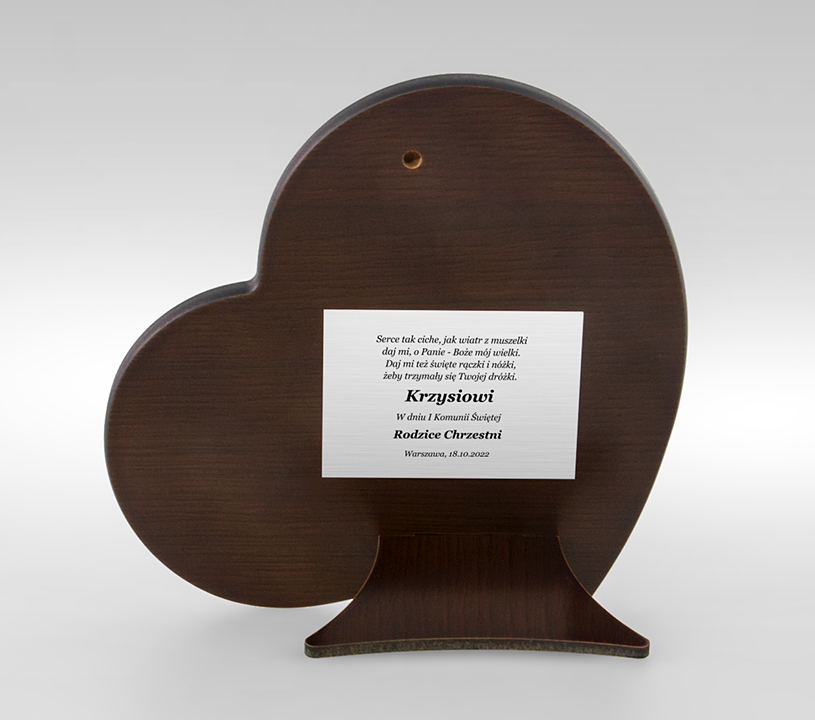 Таблиця з присвятою розміщена на зворотному боці срібної картини та виконана в техніці гравірування, тобто вибраний вами текст надрукований на тонкій алюмінієвій пластині. Техніка гравіювання гарантує смаковий зовнішній вигляд тарілки та її довговічність. І найголовніше, він не заважає поверхні срібної картини, тому не стає персоналізованим виробом - тому ви можете повернути його протягом 14 днів без пояснення причини.