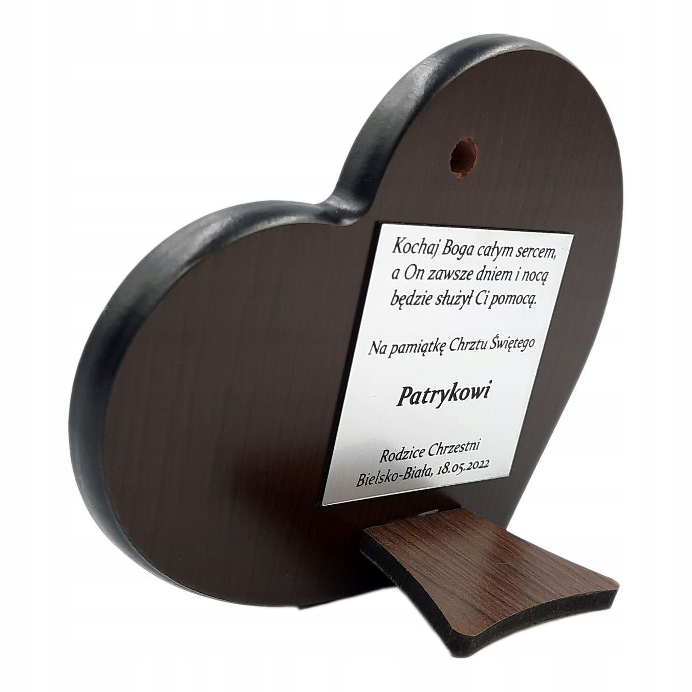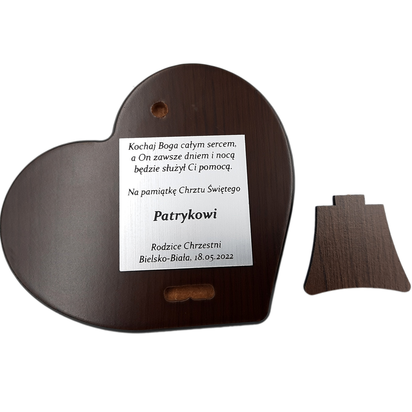 Велика срібна картина у формі серця із зображенням дівчини з господарем , виготовлений в техніці срібної ламінації. На сувенірі зображені католицькі символи, такі як чаша та облатка.