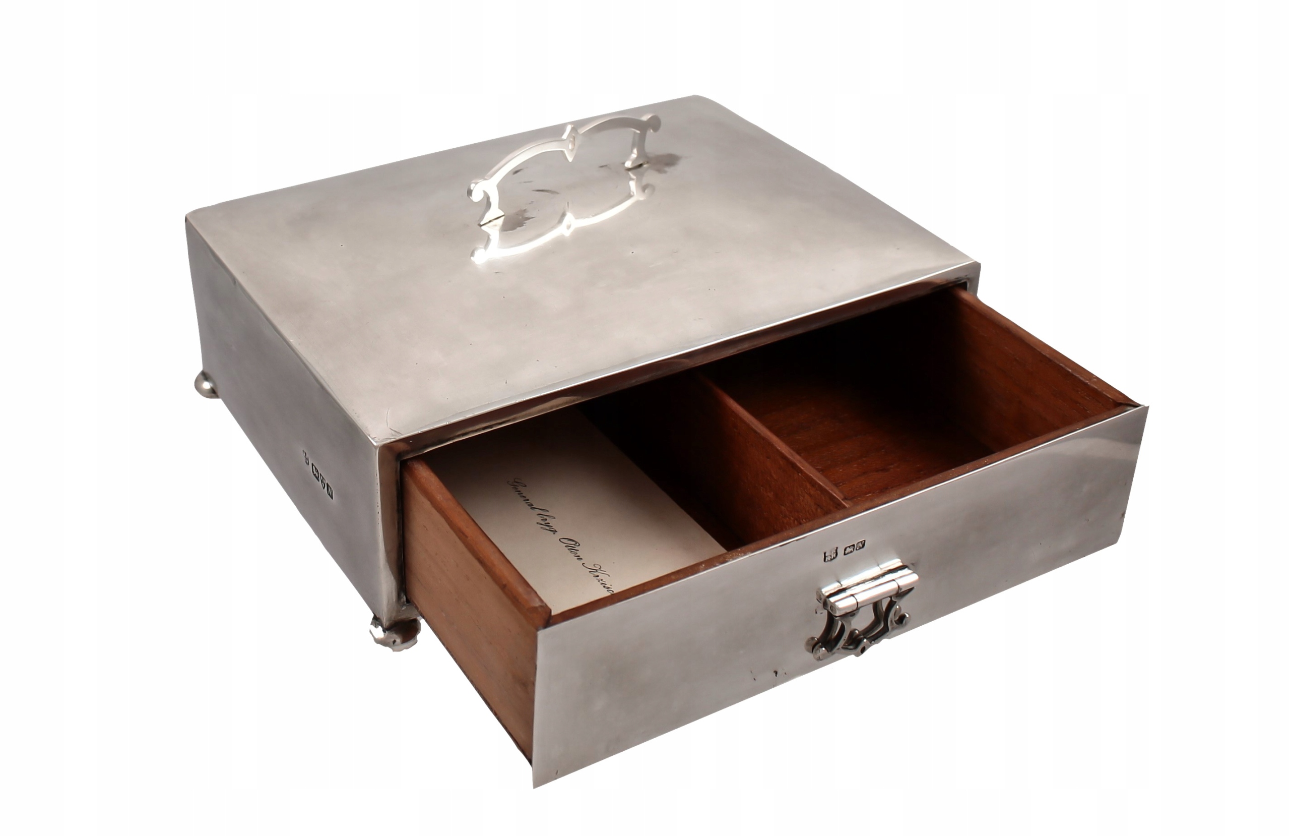 СРІБНА КАСЕТА В СЕРЕДИНІ, ОБШИТАНА ТИКОВИМ ДЕРЕВОМ