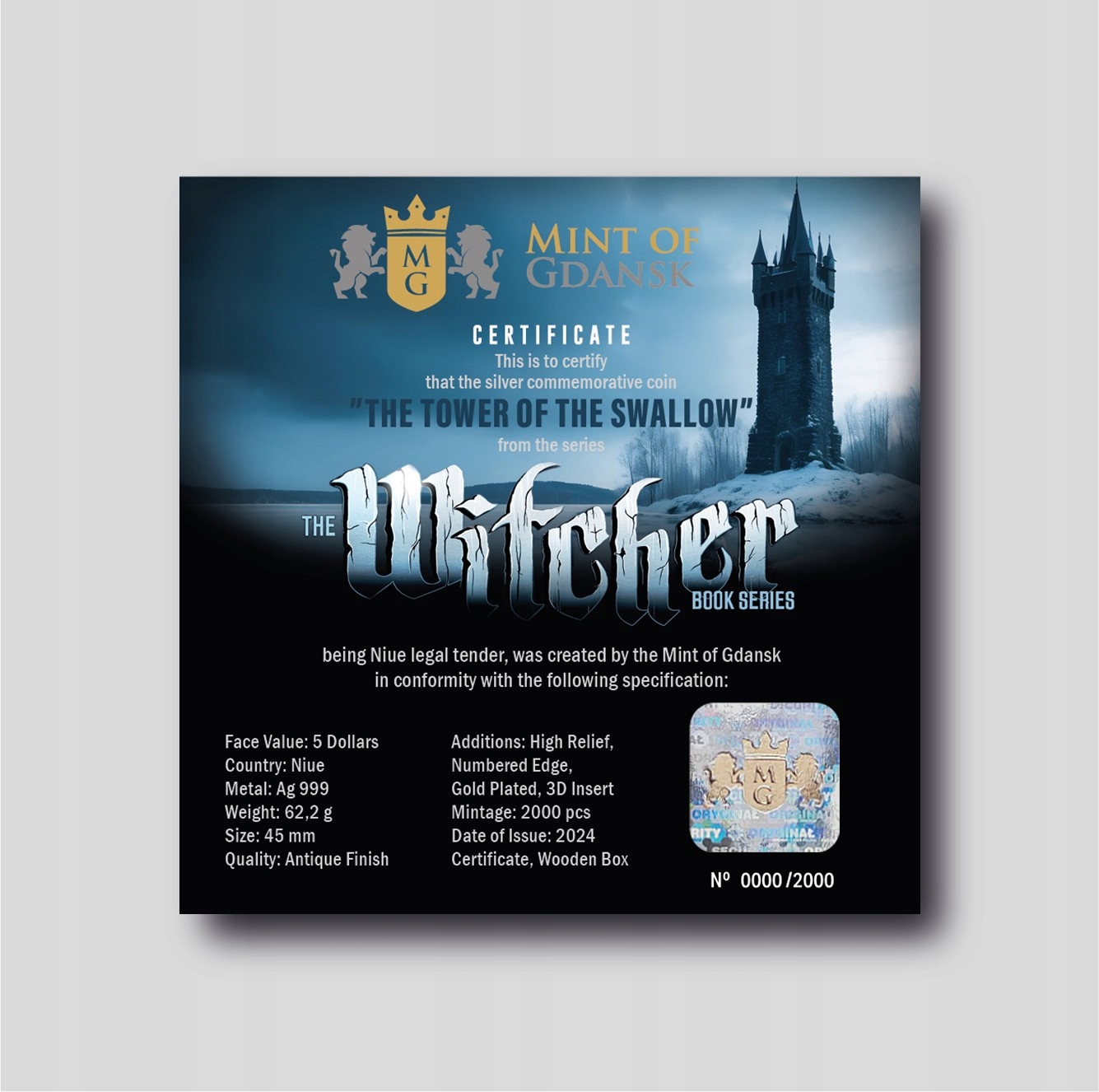 Срібна колекційна монета The Witcher Tower of Swallows $5