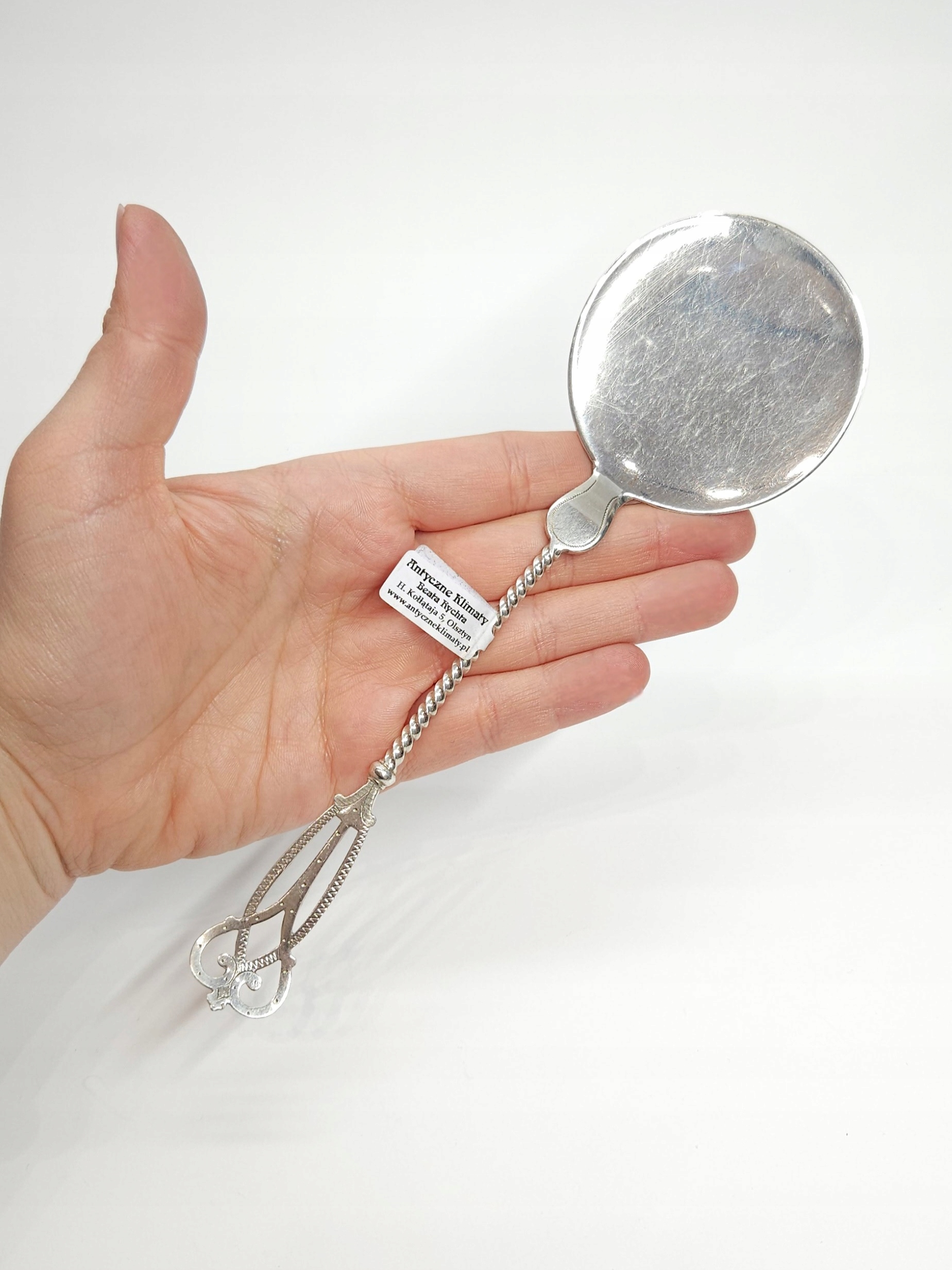 Срібна десертна лопатка, початок 19 століття 20 століття, з круглим черпаком і ажурною гравірованою ручкою з крученим корпусом; Через вік можливі дрібні мікроподряпини