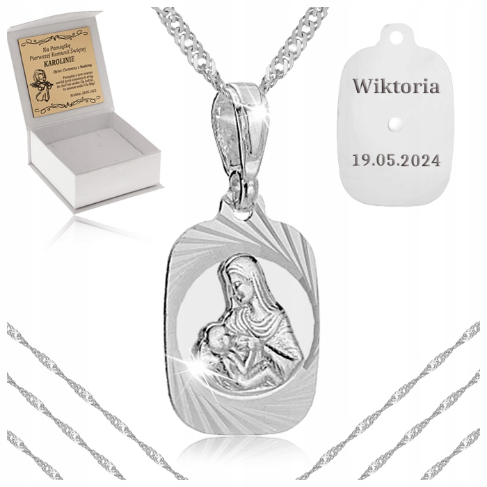 Срібна ланцюг + Медаль Божа 925 подарунок подарунка комуна