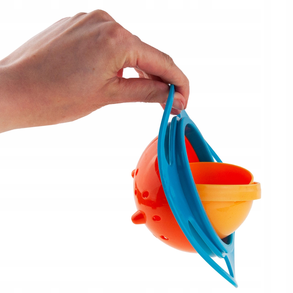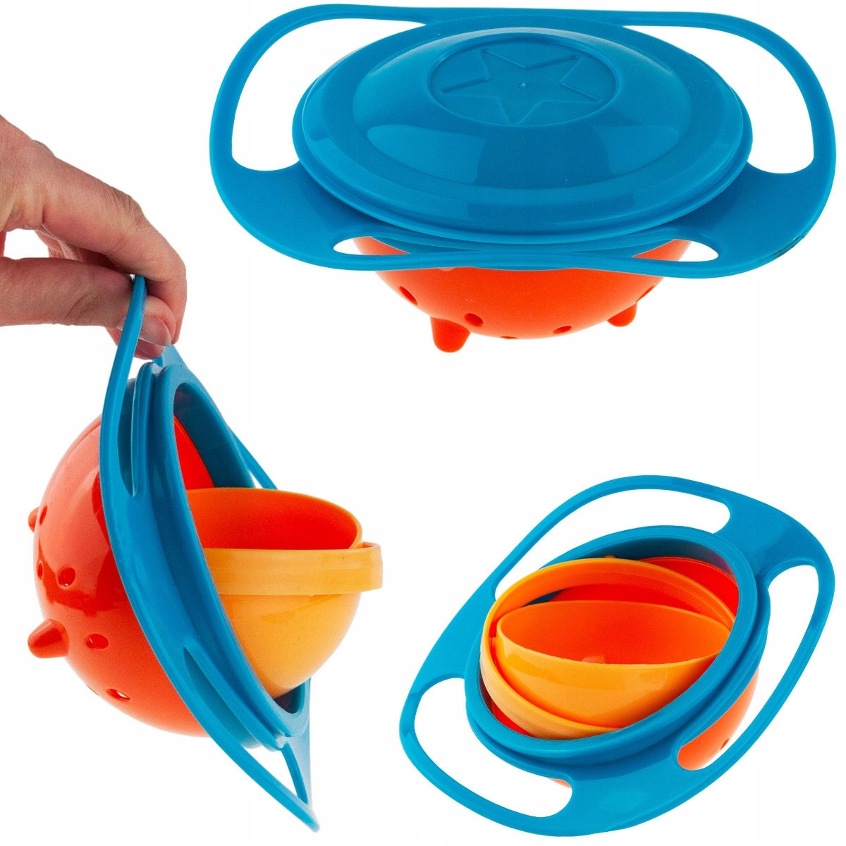 Секрет Gyro 360 Bowl полягає в його особливому центрі тяжіння. Як і глобус, кульки всередині чаші можуть обертатися на 360 градусів, а частина, в яку насипається їжа, завжди залишається на місці, незалежно від «обертання» ситуації. Що б ви не робили з мискою, її вміст ніколи не опиниться на підлозі. Дітям подобається, як миска Gyro Bowl обертається.