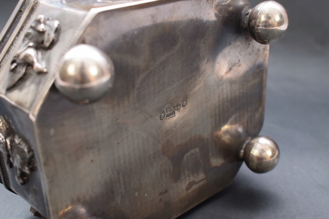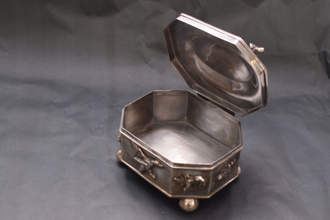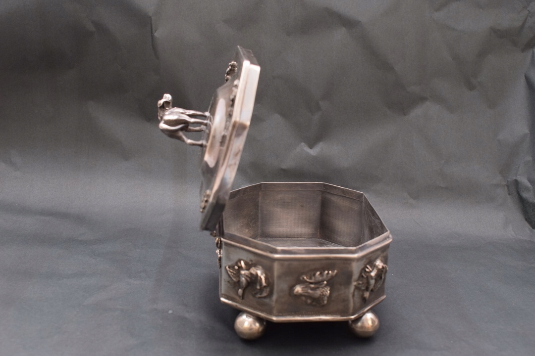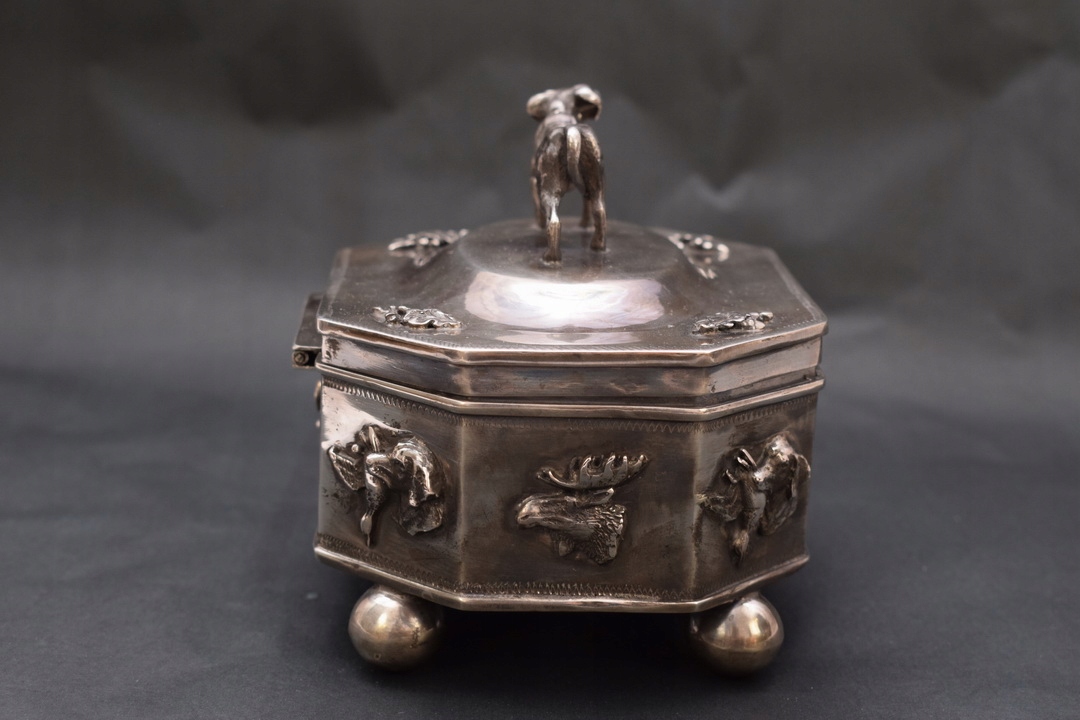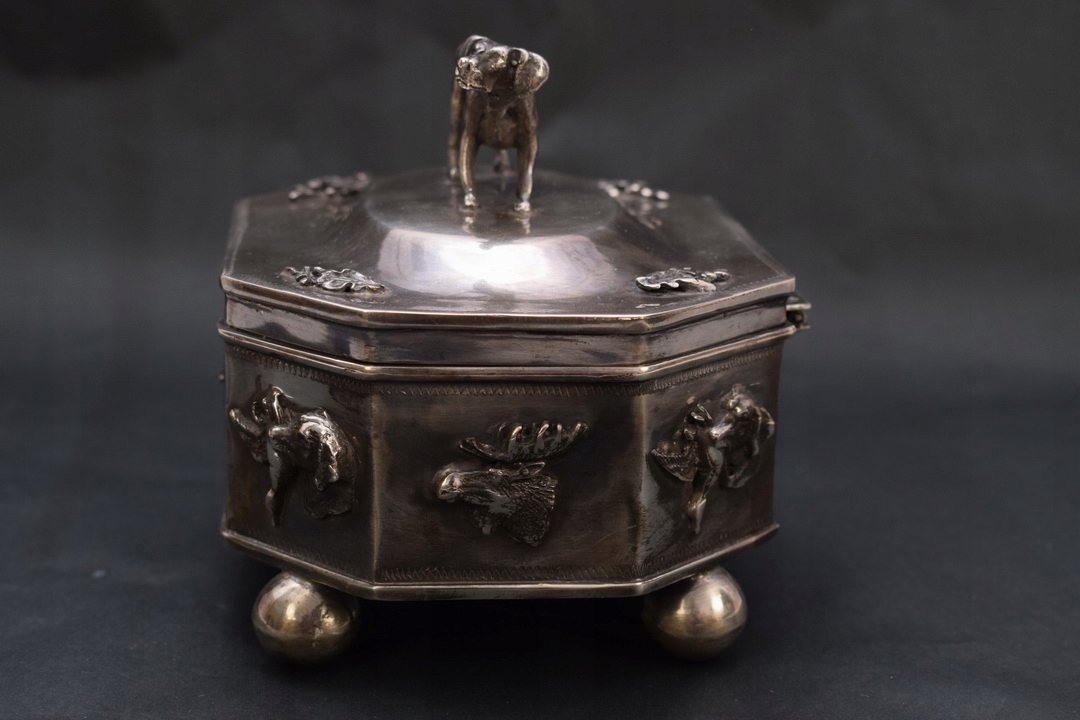 Срібна мисливська цукорниця - мисливська собака - царська Росія, срібло 84 проби 332 г