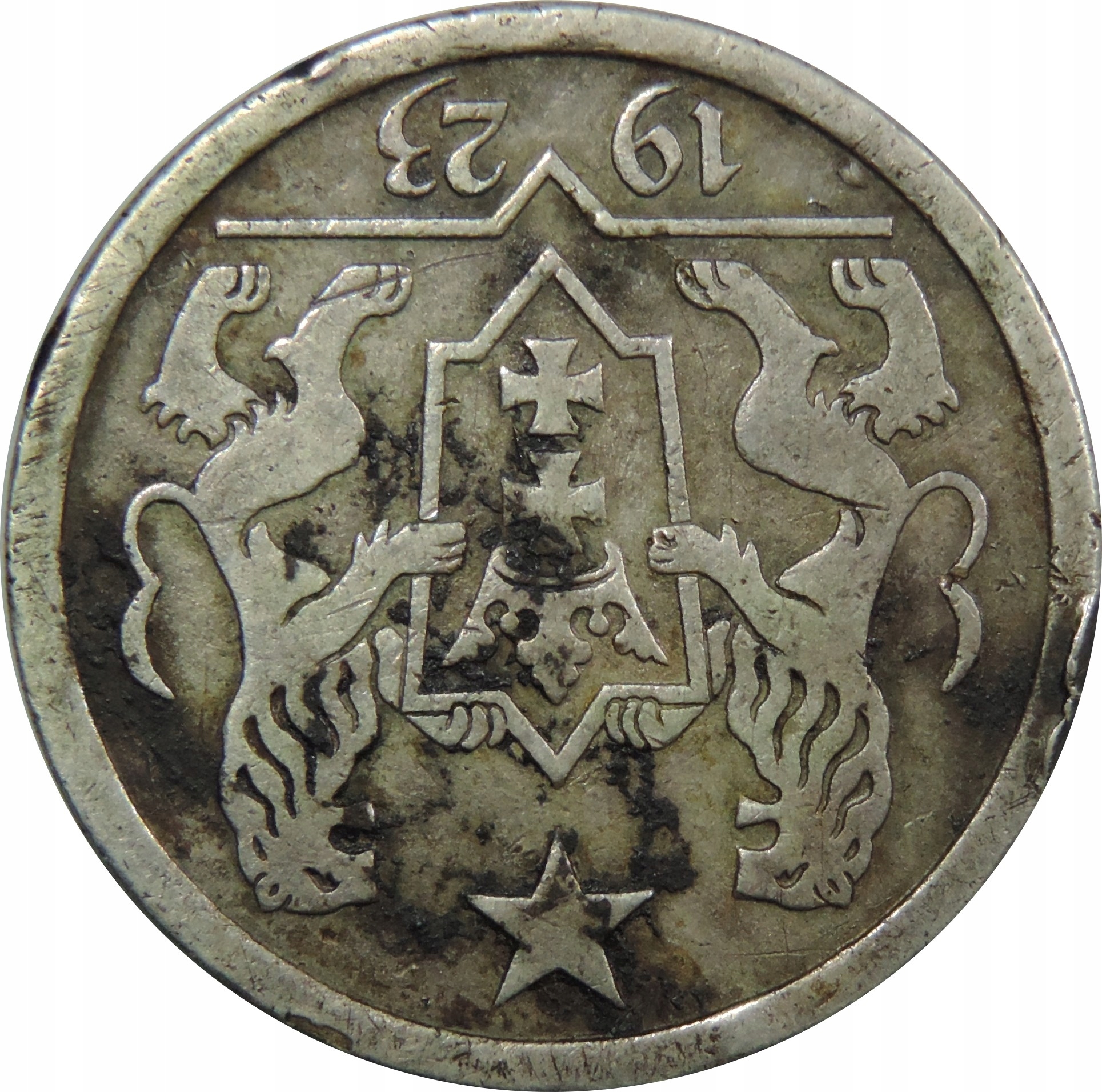 СРІБНА МОНЕТА - 2 ГУЛЬДЕНИ 1923 - ВІЛЬНЕ МІСТО ГДАНСЬК - ОРИГІНАЛ -PK22