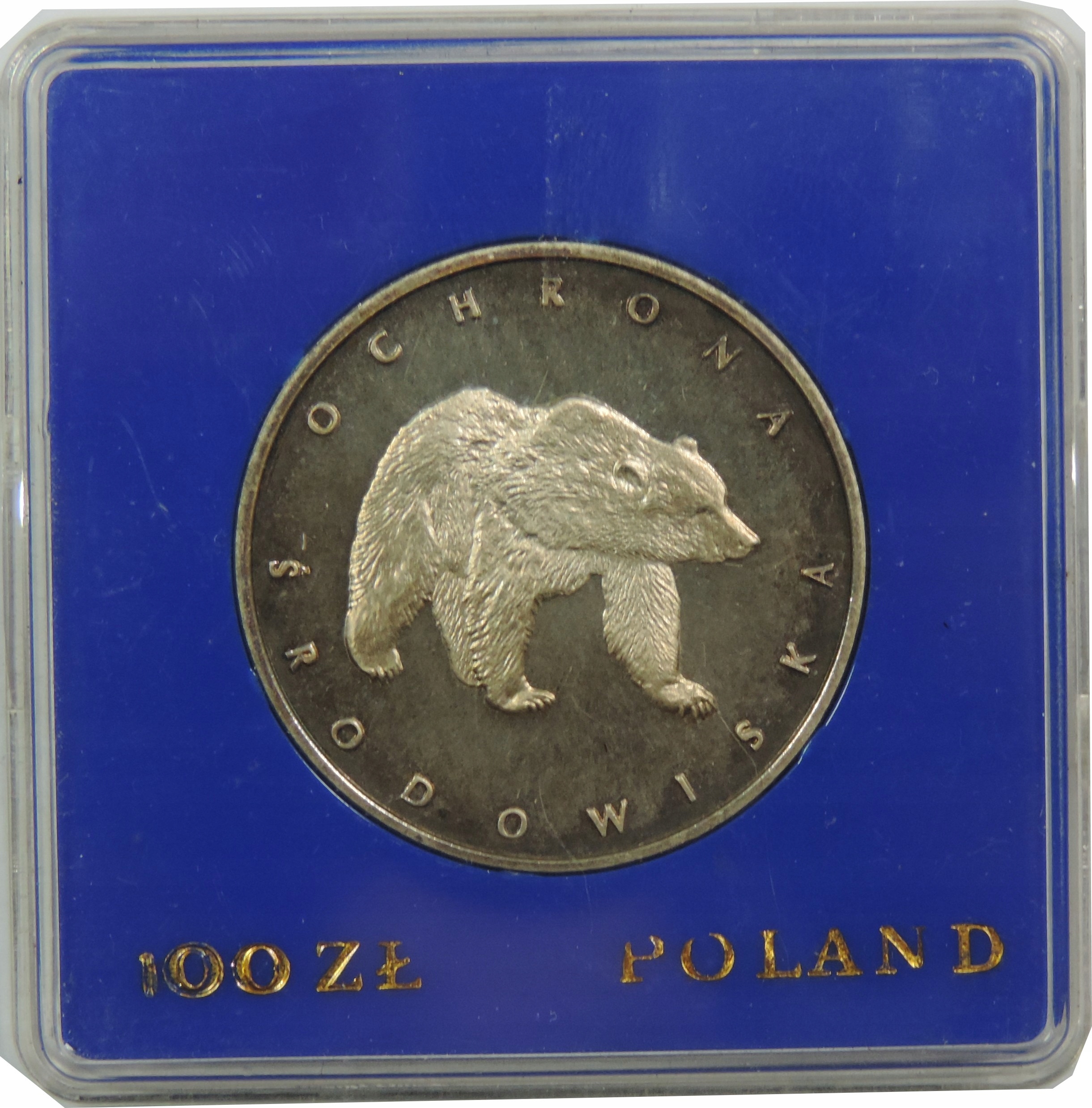 Срібна монета - AG COIN - PLN 100 1983 Niedźwiedz - Польща -ou6631