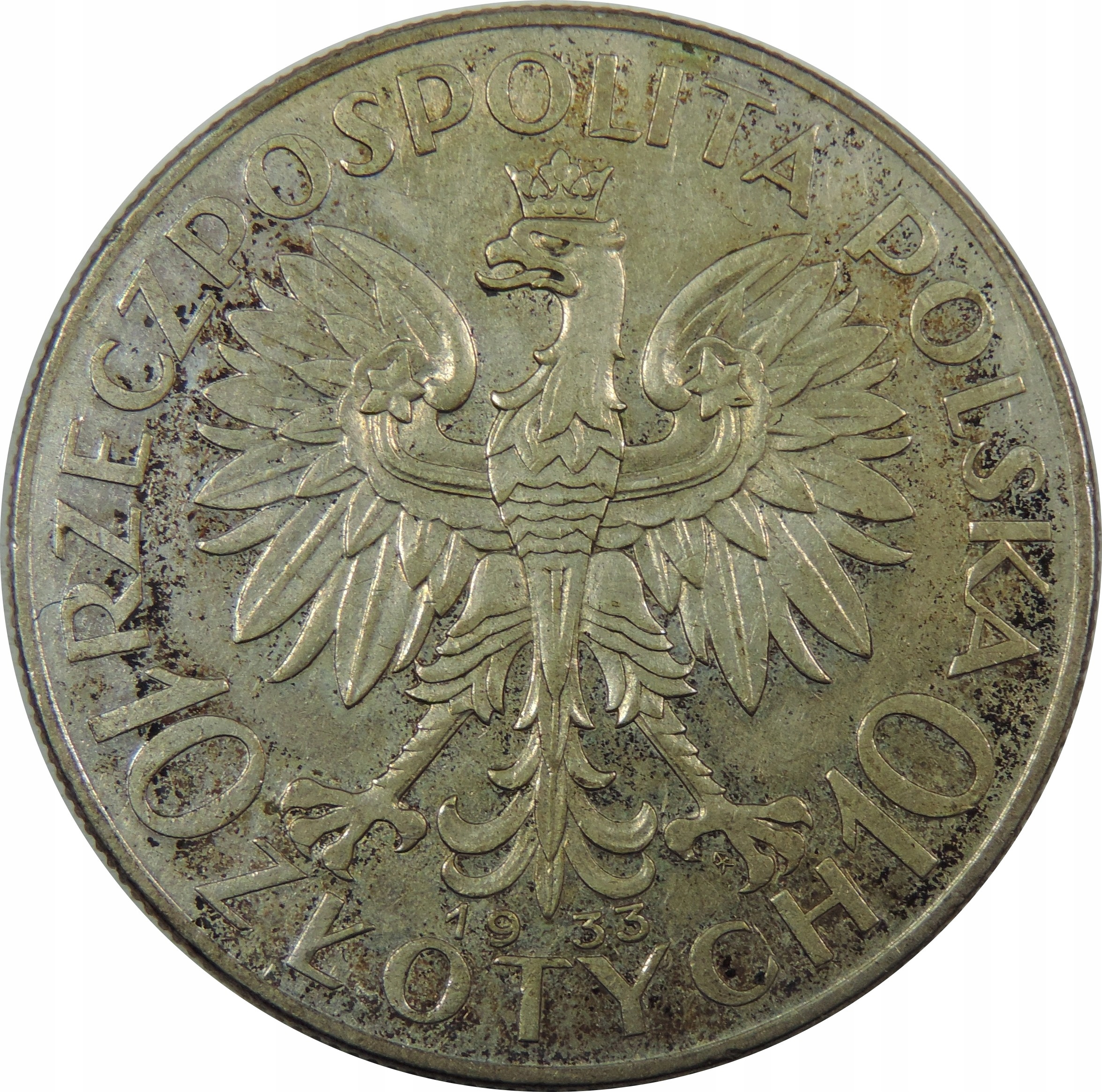 СРІБНА МОНЕТА - ДОВОЄННА МОНЕТА - 10 ЗЛОТИЙ - ЖІНОЧА ГОЛОВА -OE7252