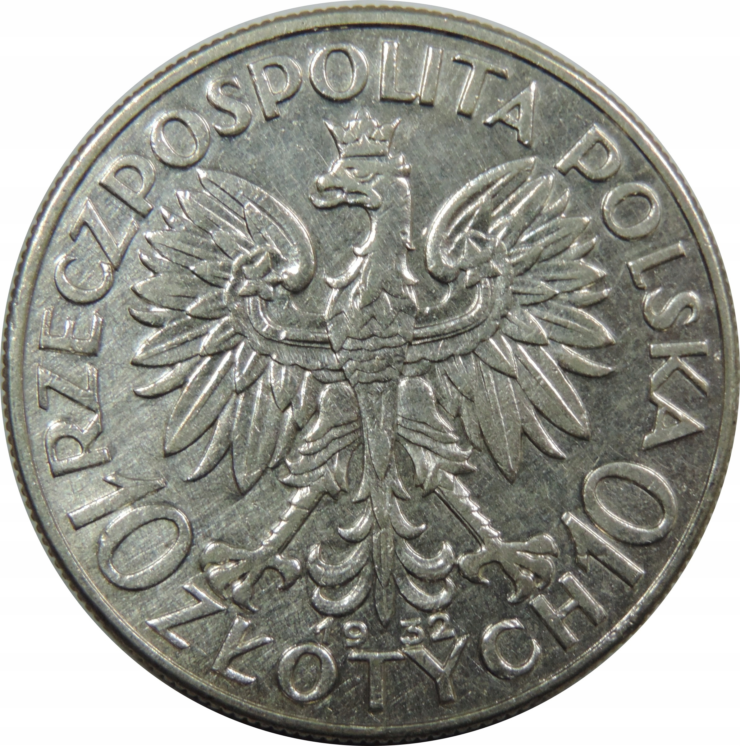 СРІБНА МОНЕТА - ДОВОЄННА МОНЕТА - 10 ЗЛОТИЙ - ЖІНОЧА ГОЛОВА -OE7306
