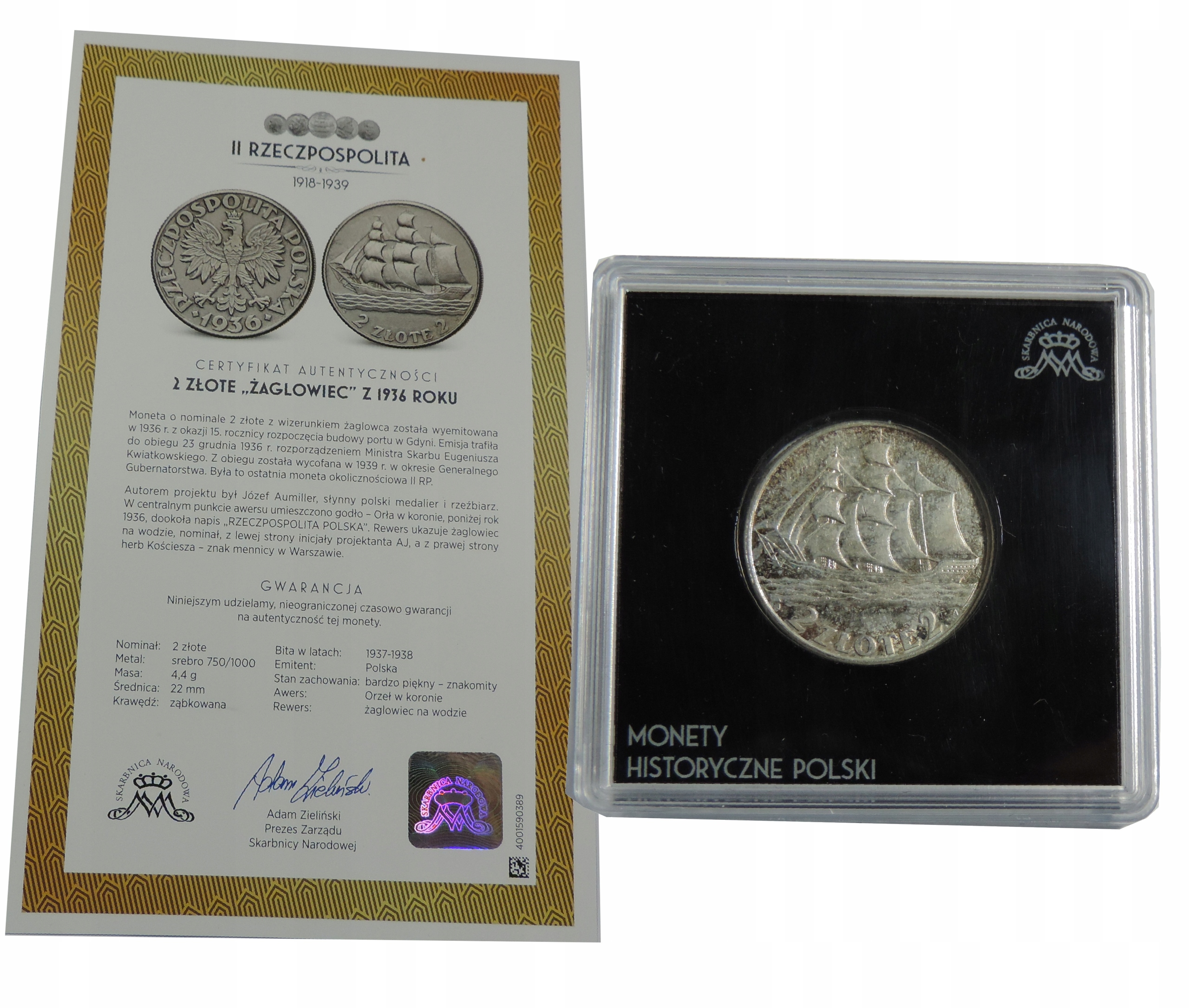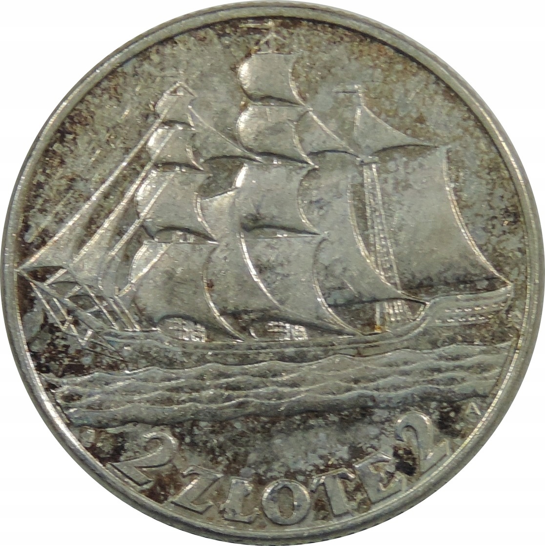СРІБНА МОНЕТА - ДОВОЄННА МОНЕТА - 2 ЗОЛОТИХ - ВІТРИЛЬНИЙ КОРАБЕЛЬ -OU387