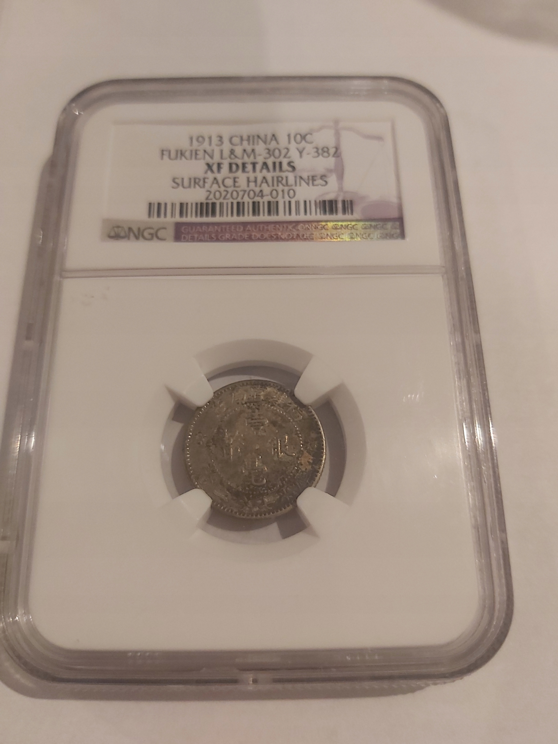 Продам срібну монету 10 центів з Китаю 1913 року в NGC granding