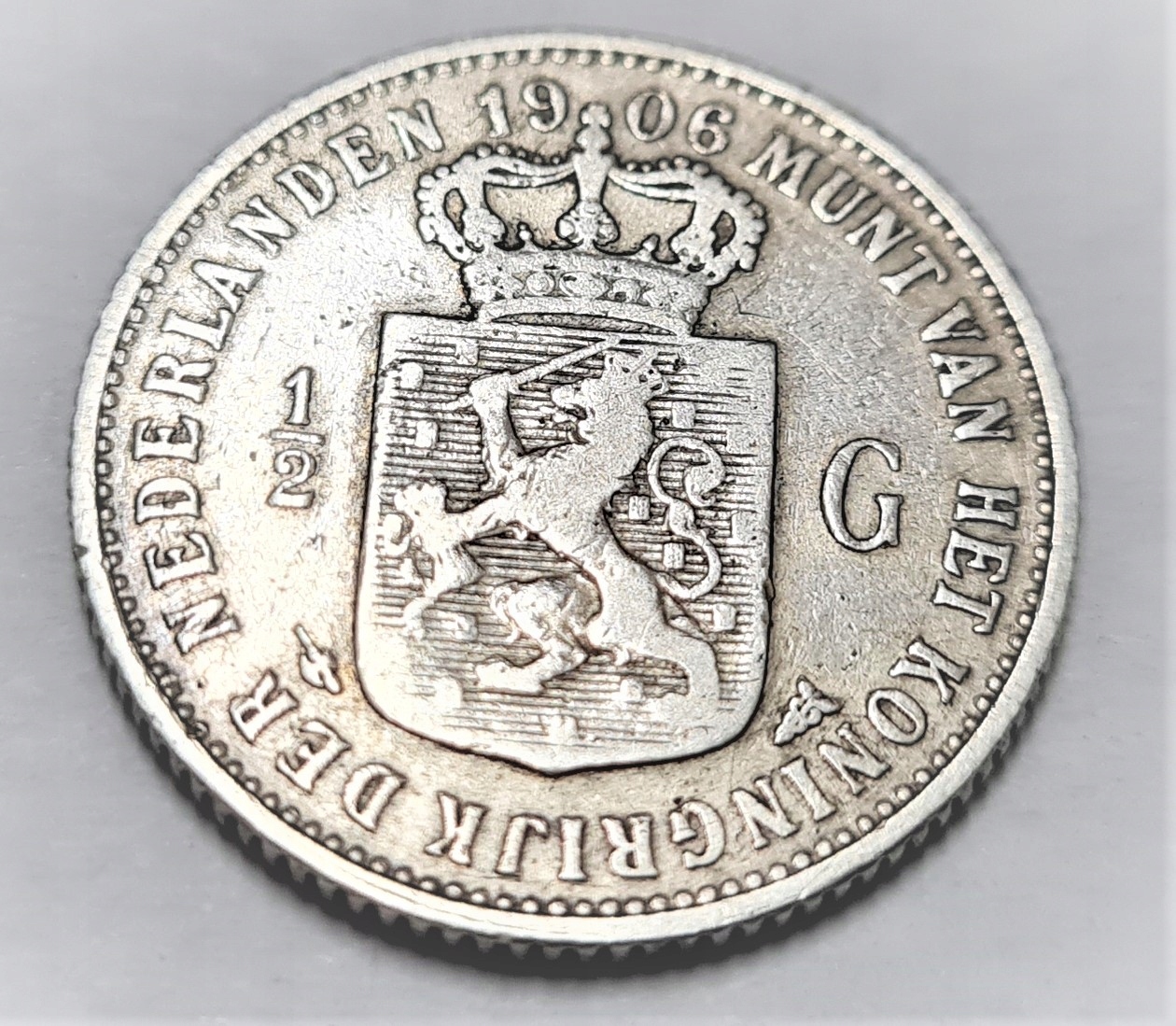 Срібна монета 1/2 Gulden 1906 Королева Вільгельміна