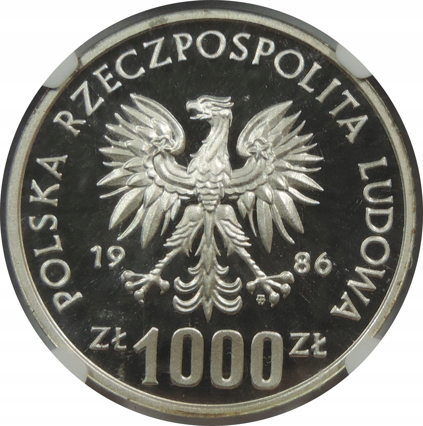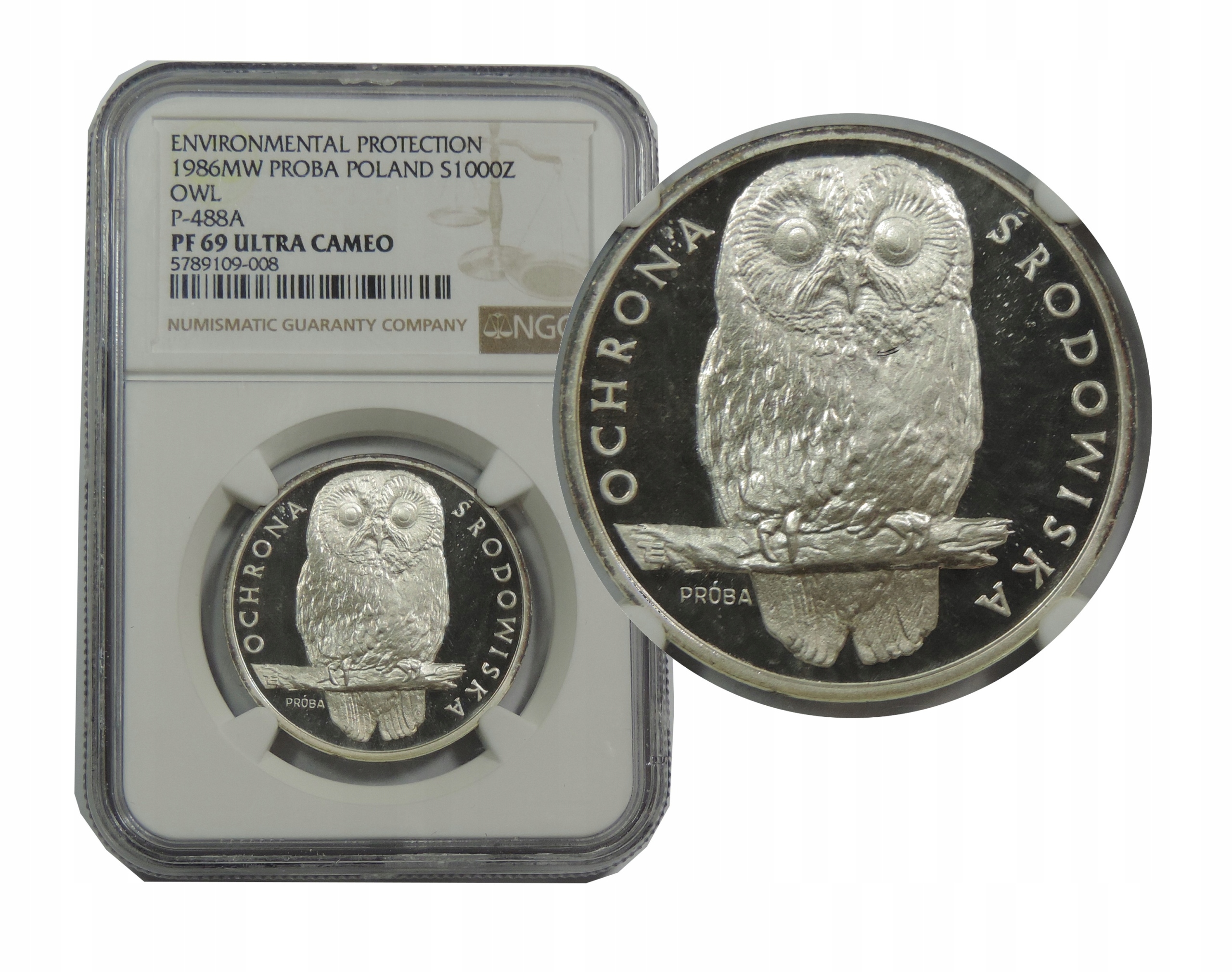 Срібна монета польської народної республіки - Тест - 1000 Zlotys 1986 - SOWA - NGC PF69 -OU5758