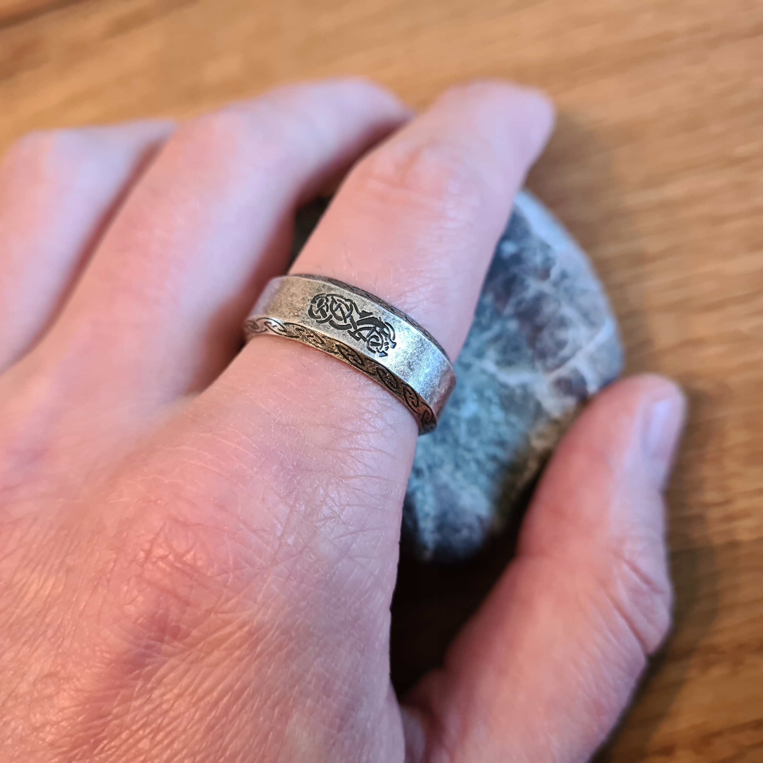 СРІБНА НОРДІЙСЬКА ОБРУЧКА КІЛЬЦЕ-ПЕЧАТКА З ДРАКОНОМ R17