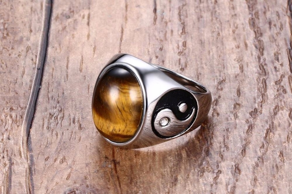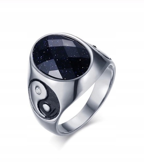 Прекрасна каблучка з печаткою Інь Янь з каменем Cairo Night Stone